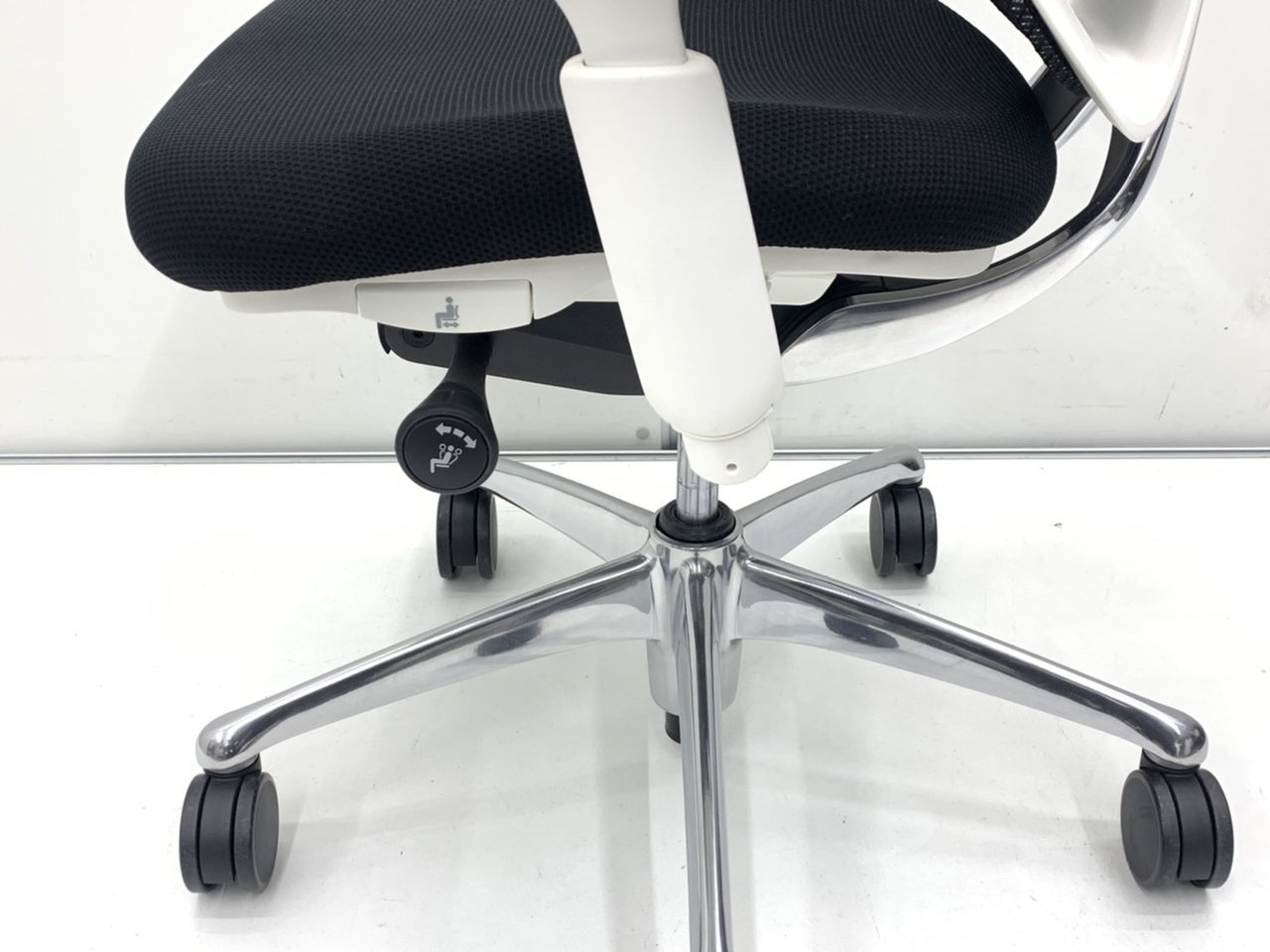 - 座面右下のレバーをスライドさせる「クイックスライドオペレーション」で、リクライニング反力を調整できます。強さの状態が視覚的にわかるため、直感的に操作がおこなえます。