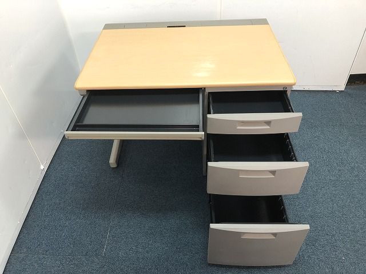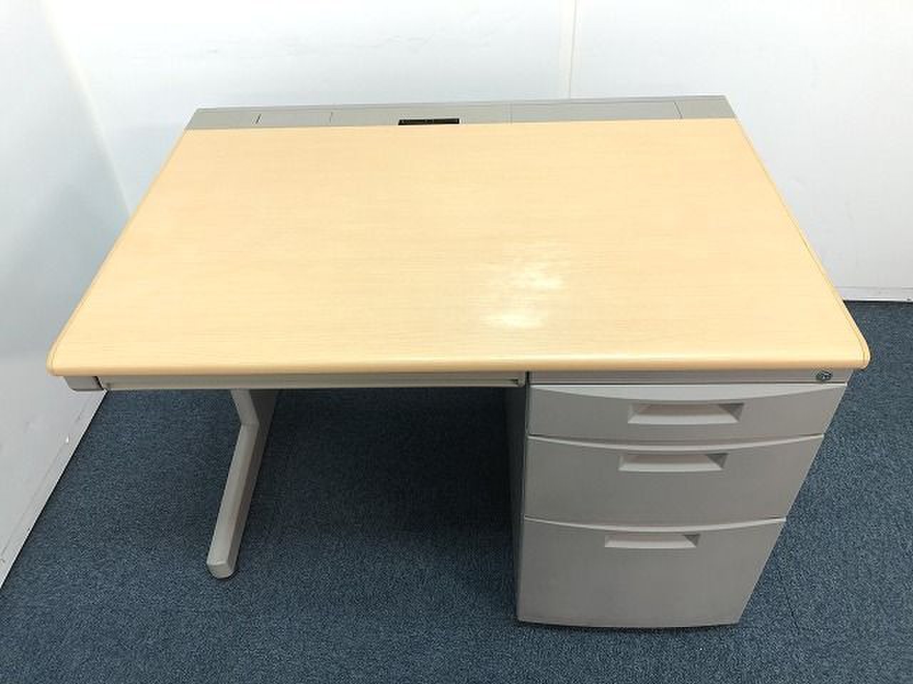 ナチュラルカラー天板の横幅1000mmのコンパクトなデスクになります。
