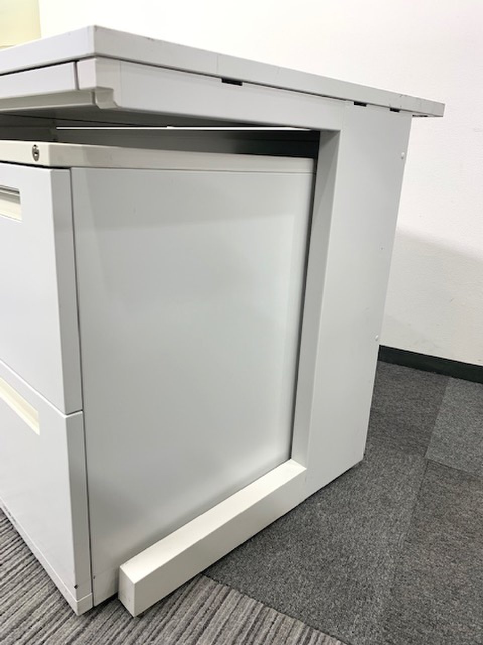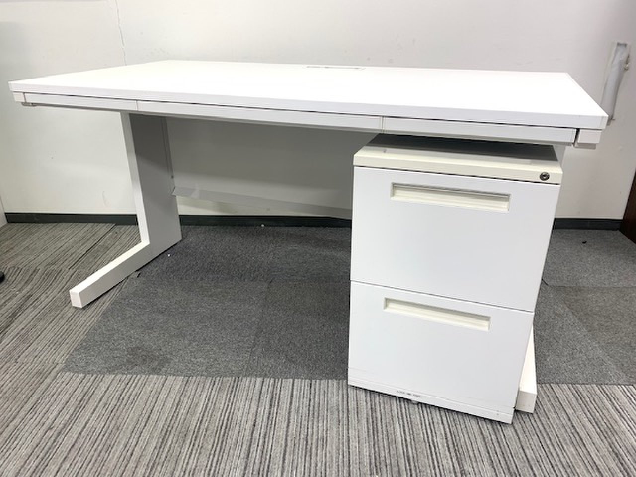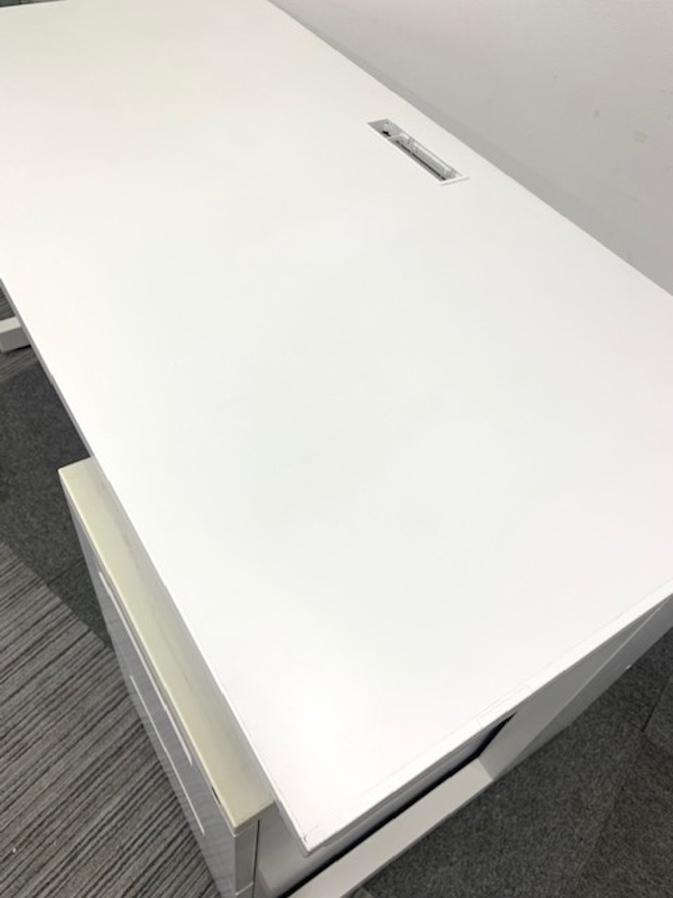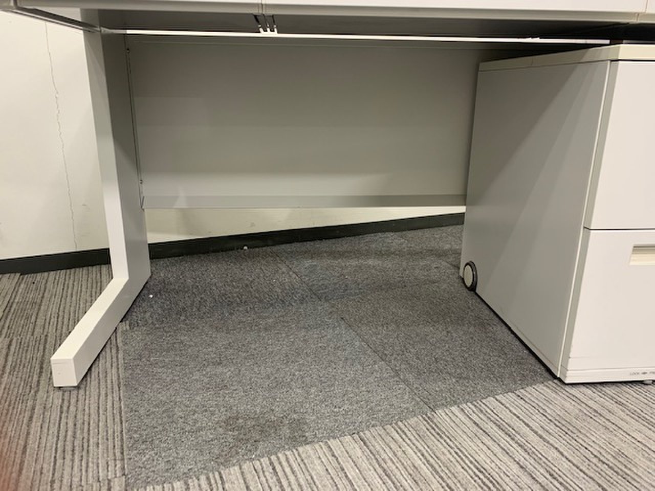 【セット商品!】平机+ワゴン|ホワイト天板|配線カバー付き- 新大阪店