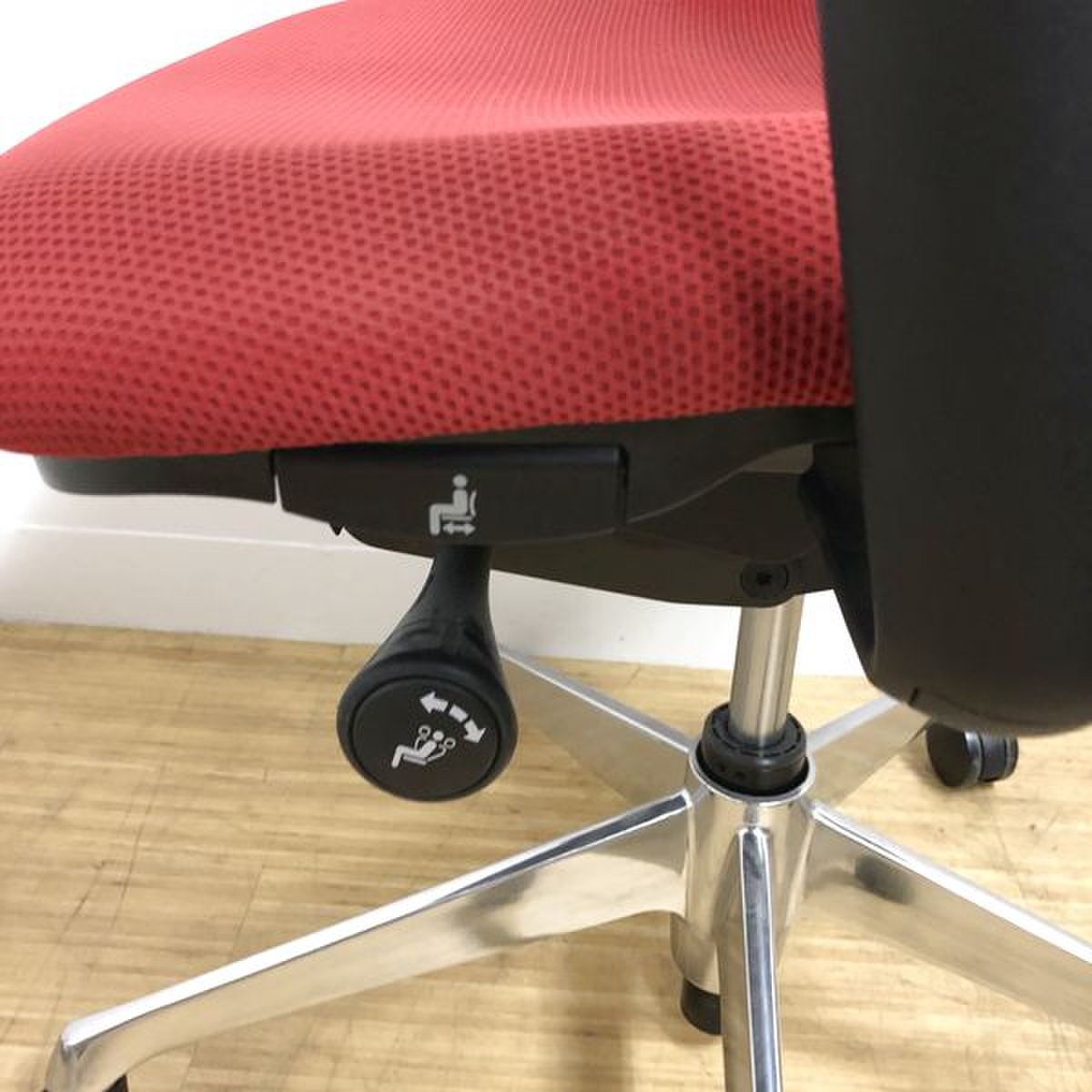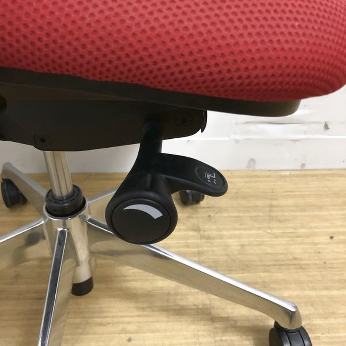 - 座面右下のダイヤル操作で、リクライニングの強弱調整が行えます。これまでのダイヤル式よりも、少ない回転数で、最弱?最強の調整が可能です。