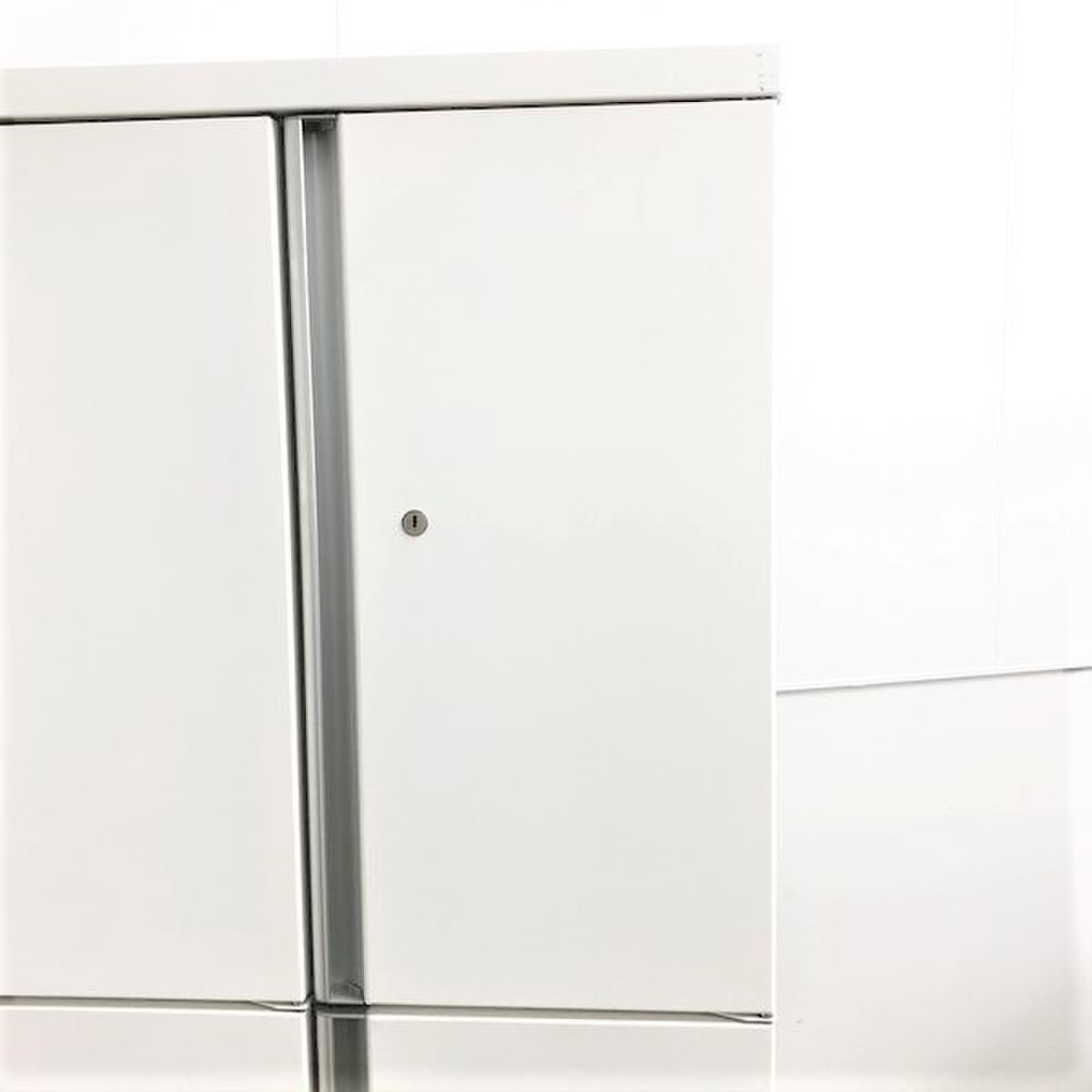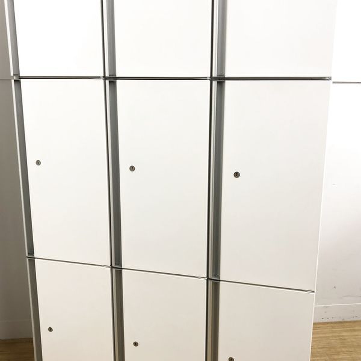 【鍵2本ずつ付き!】大きな取っ手がスタイリッシュかつ機能的!ホワイト×シルバーのデザイン性のあるロッカー オカムラ SWタイプ- 名古屋千種店
