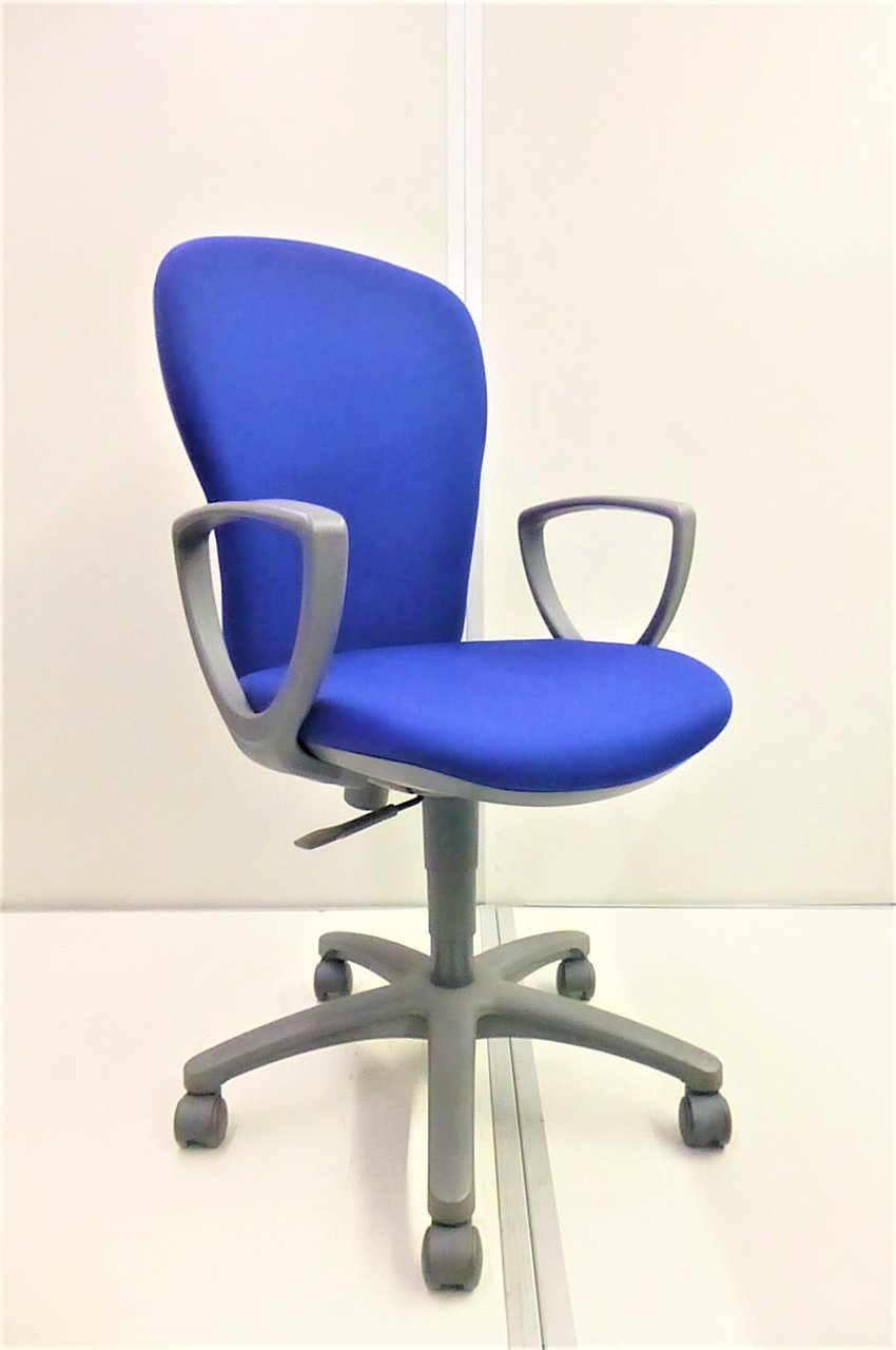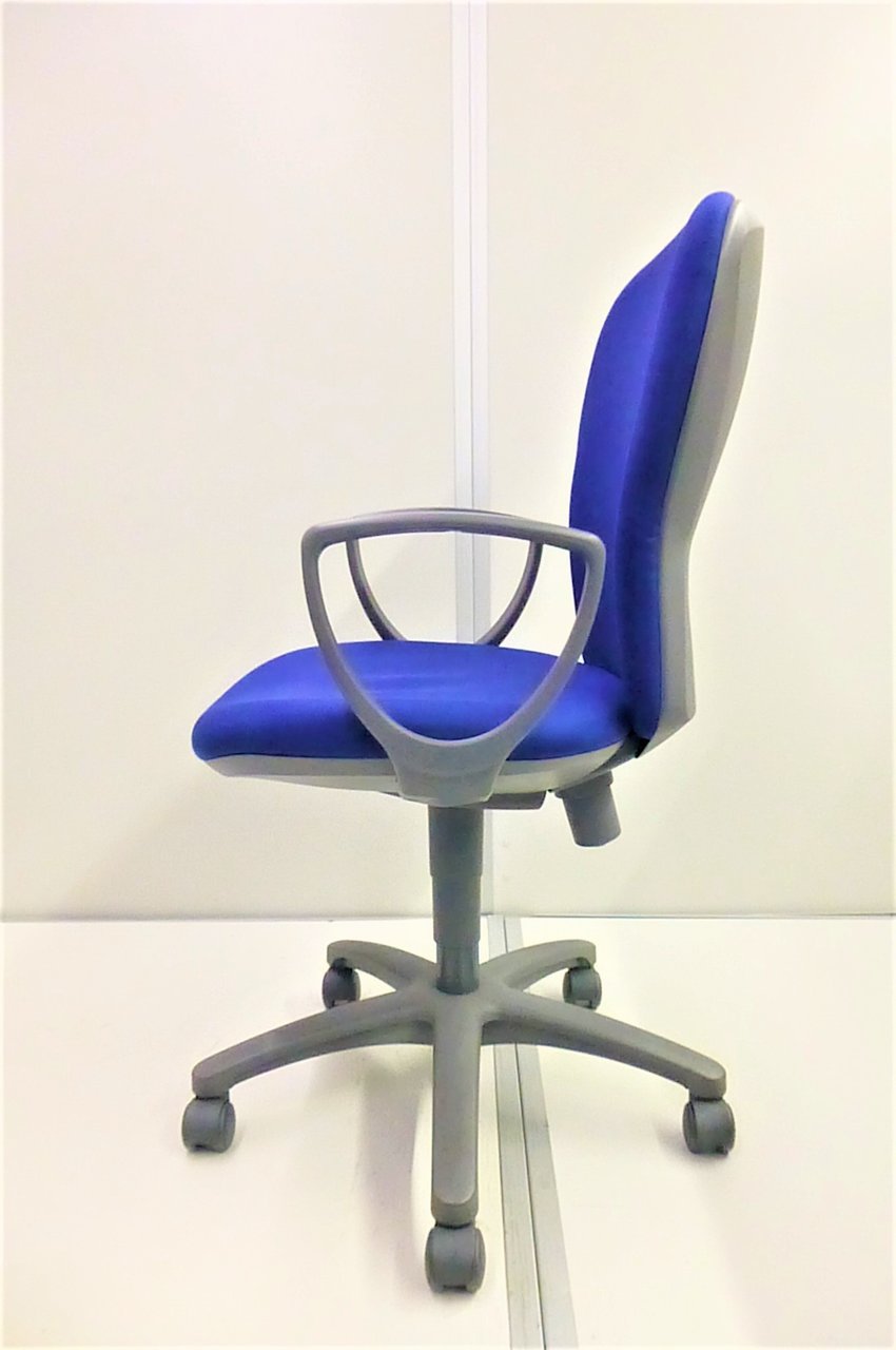 【ふっくらクッションが心地良い!コスパ抜群のコンパクトチェア!】■コクヨ(KOKUYO)製 レグノチェア 肘付ローバック ■サークル肘 ■モデレートブルー×グレーシェル【AD】