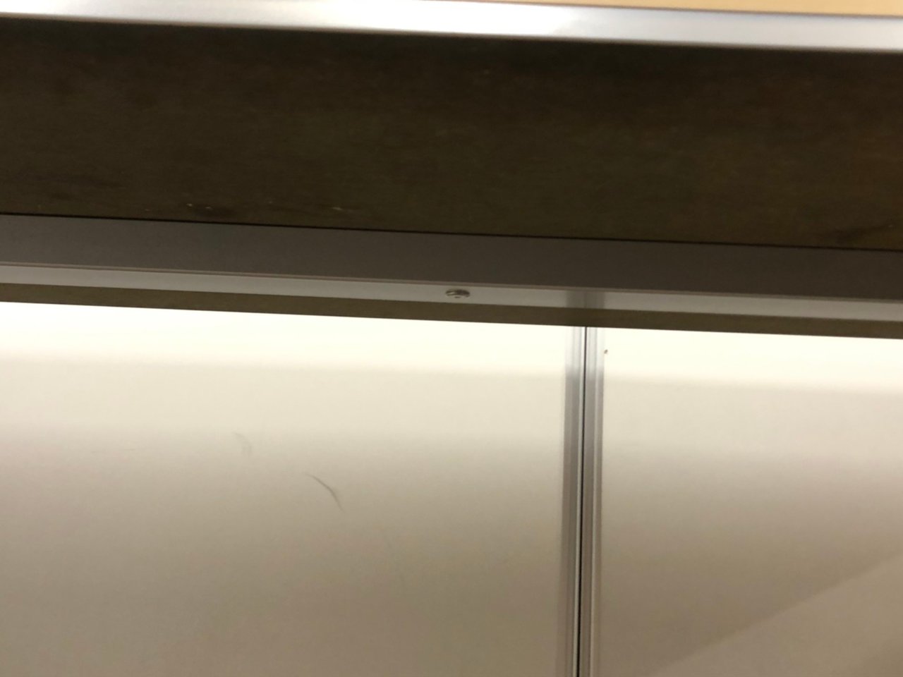 - あり黄ばみ・変色が広い範囲にうっすらある、または濃い黄ばみ・変色が一部ある。(例、天板、幕板、棚板、サイド部分、脚部等にある。)