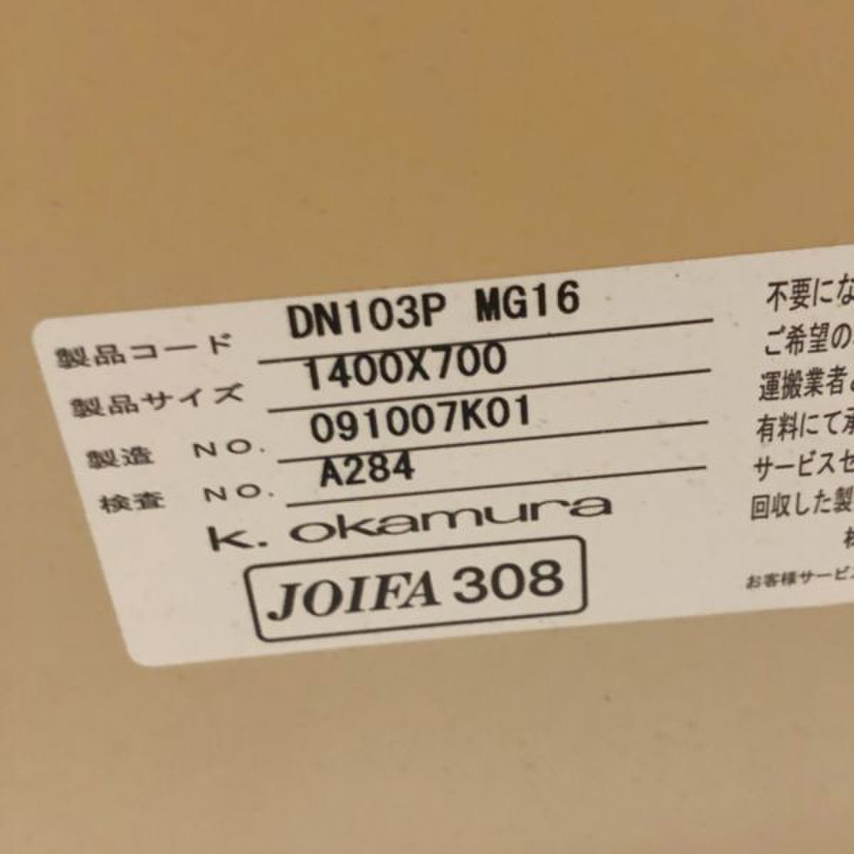 【中古】 プロユニット DN103P MG16 オカムラ/okamura 平机 306641