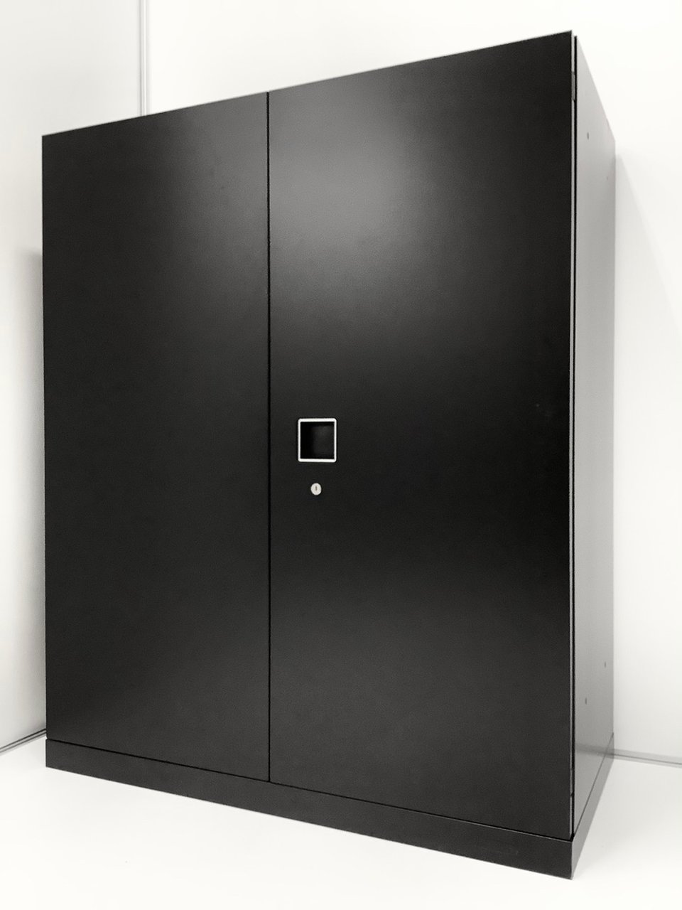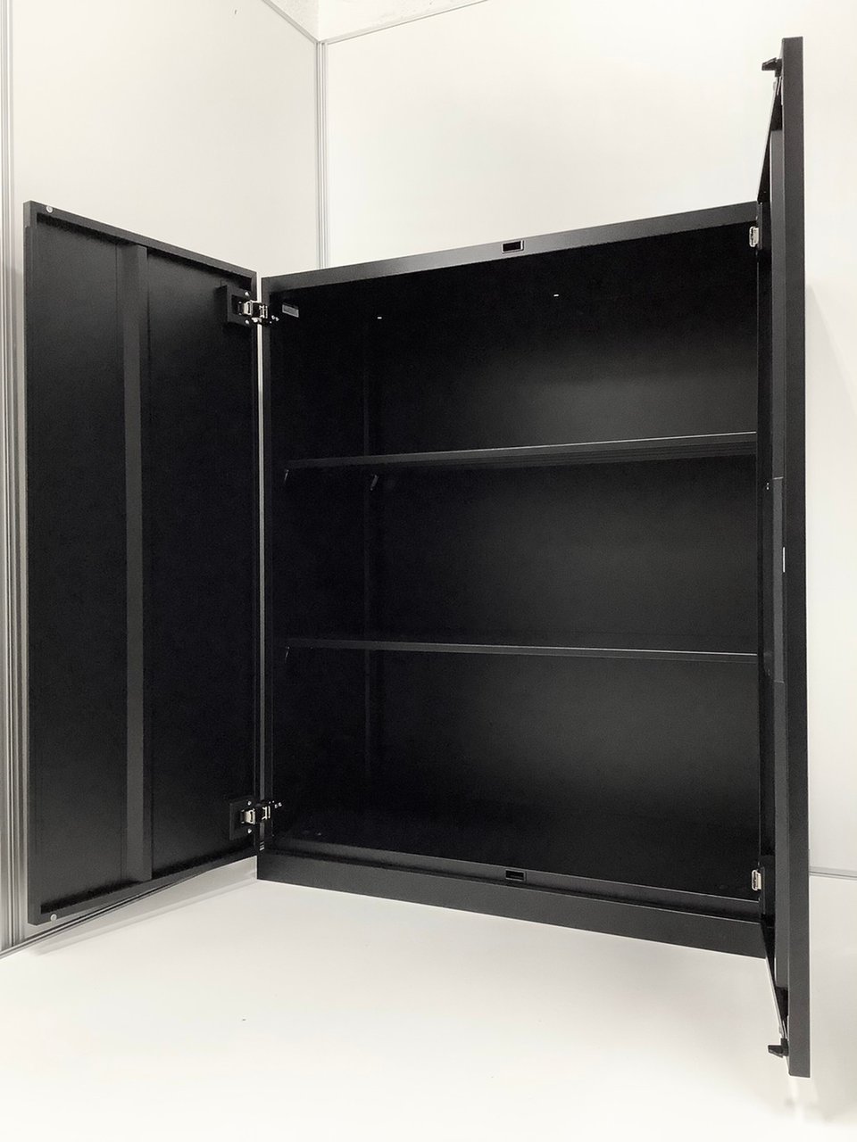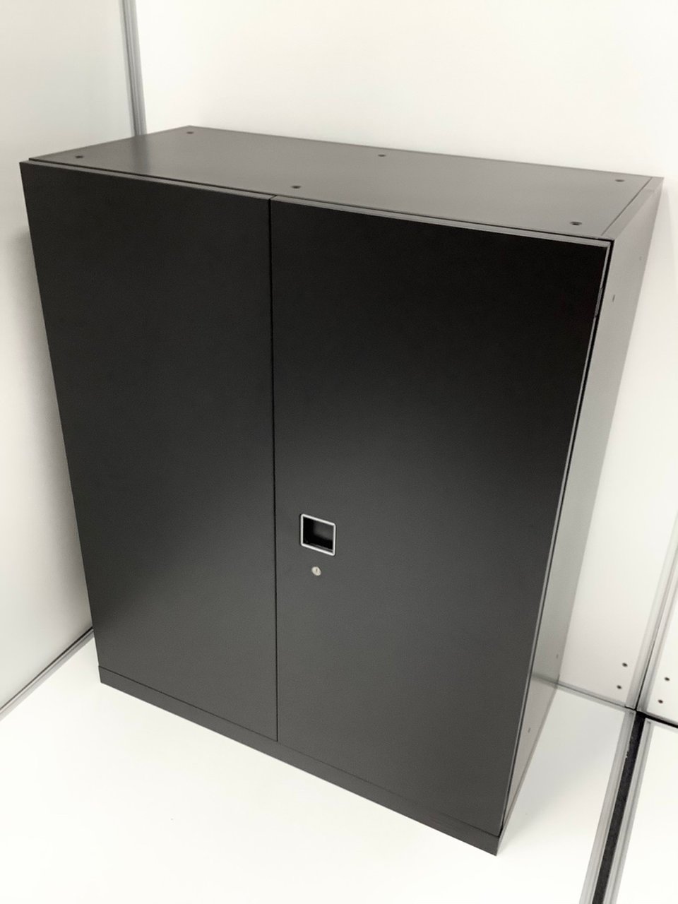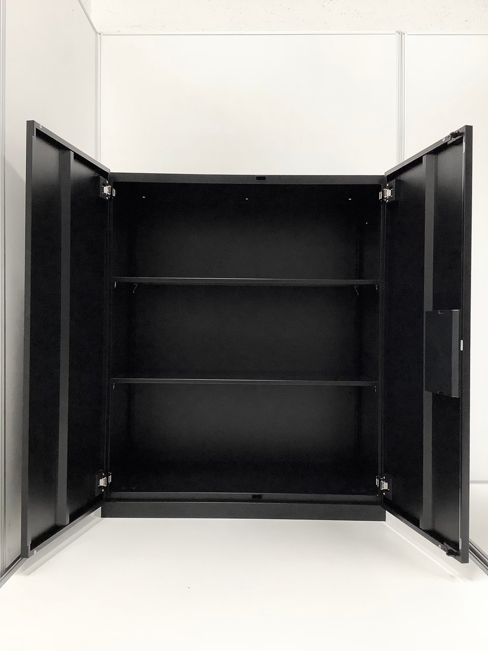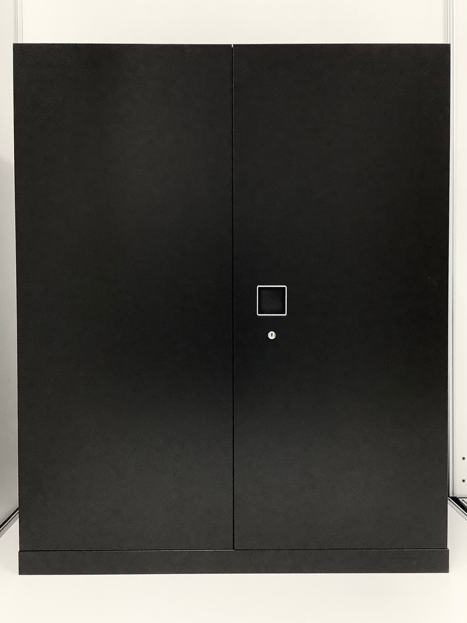 オカムラ製のレクトライン(ブラックタイプ)シリーズ、両開き書庫。