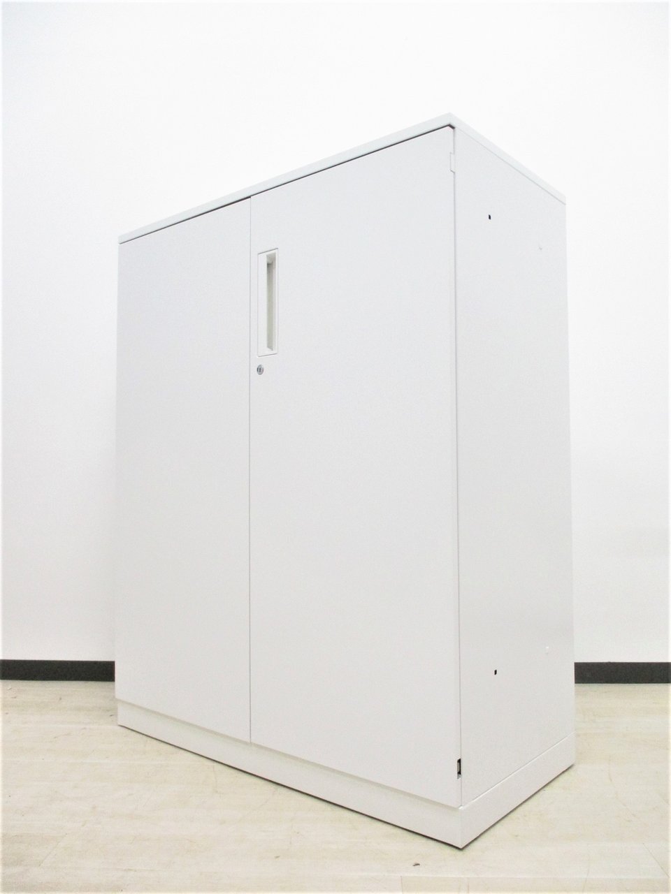 【収納物がひとめで分かる両開き戸タイプ!】■コクヨ(KOKUYO)製 エディア(EDIA)シリーズ 両開き書庫 ローキャビネット H1130㎜ ■天板・ベース付 ■ホワイト ■シリンダー錠