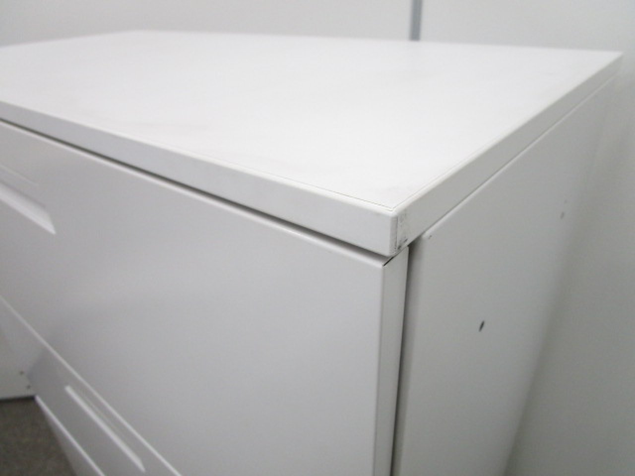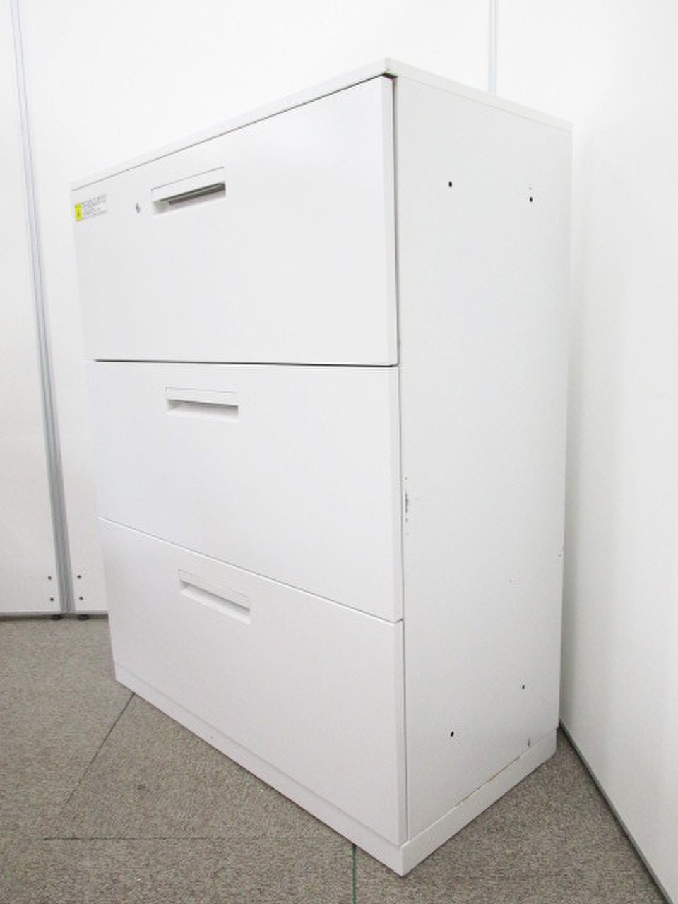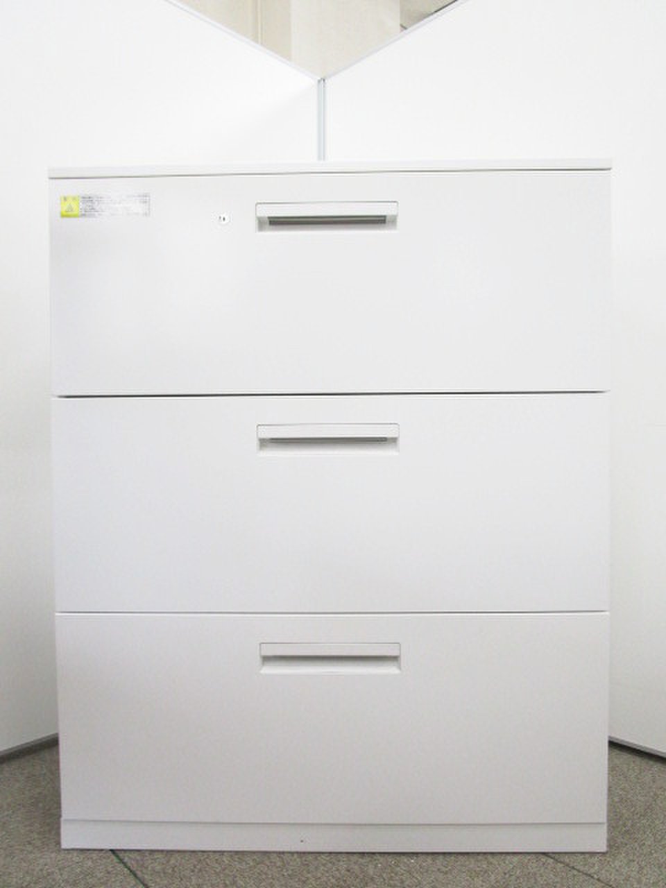 【ファイル収納に便利な引出し型キャビネット!】■ウチダ(UCHIDA) HSシリーズ 3段ラテラル書庫 ホワイト ※日焼け・キズありのためお安く!