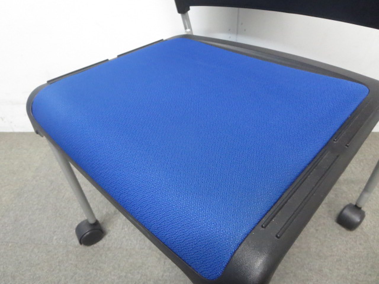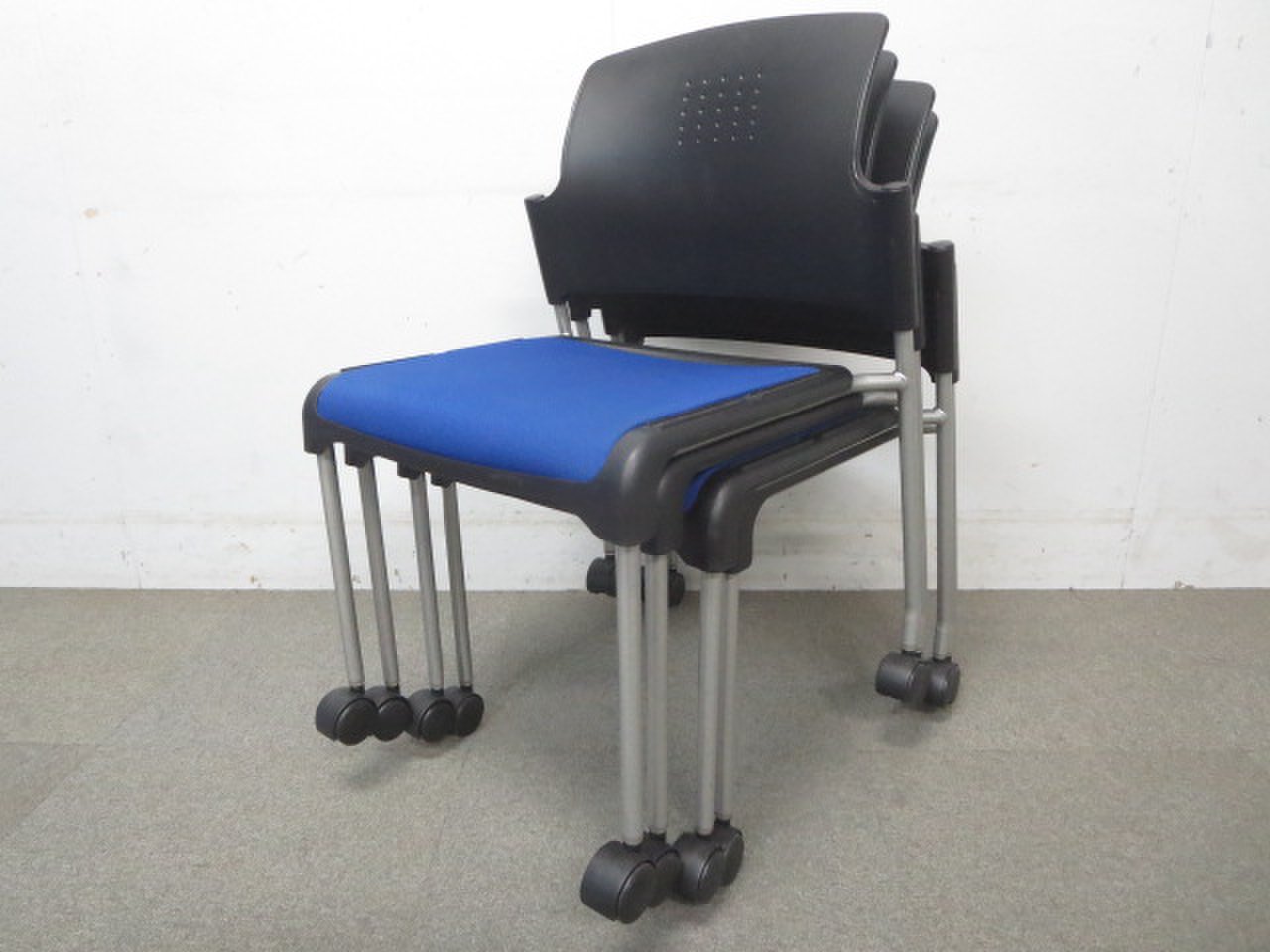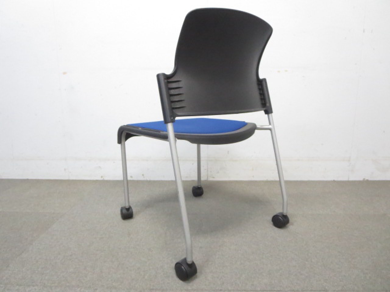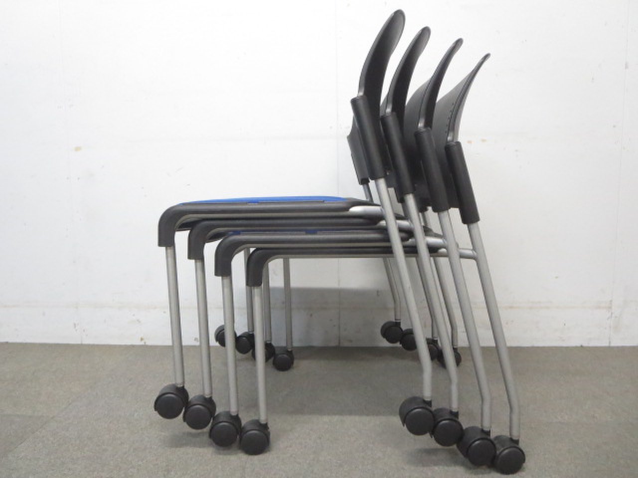 【スムーズに動かせる!】■スタッキングチェア ブルー キャスター付!- 川崎店