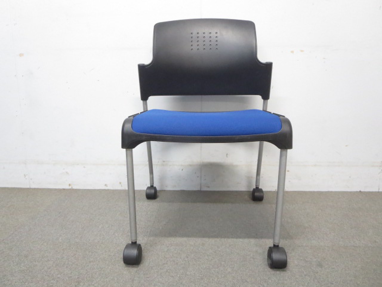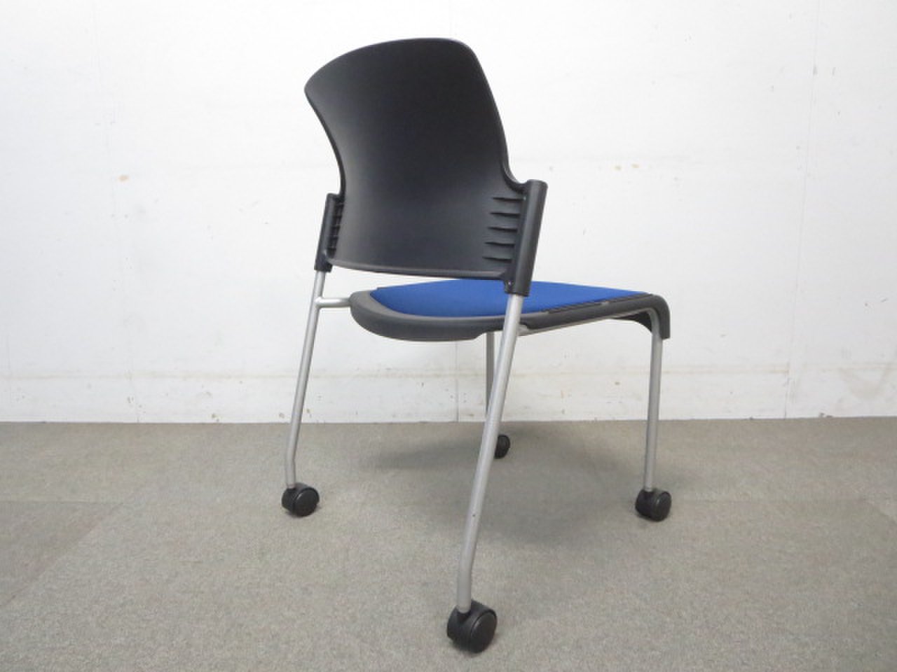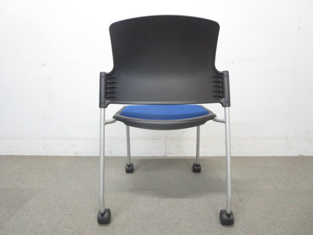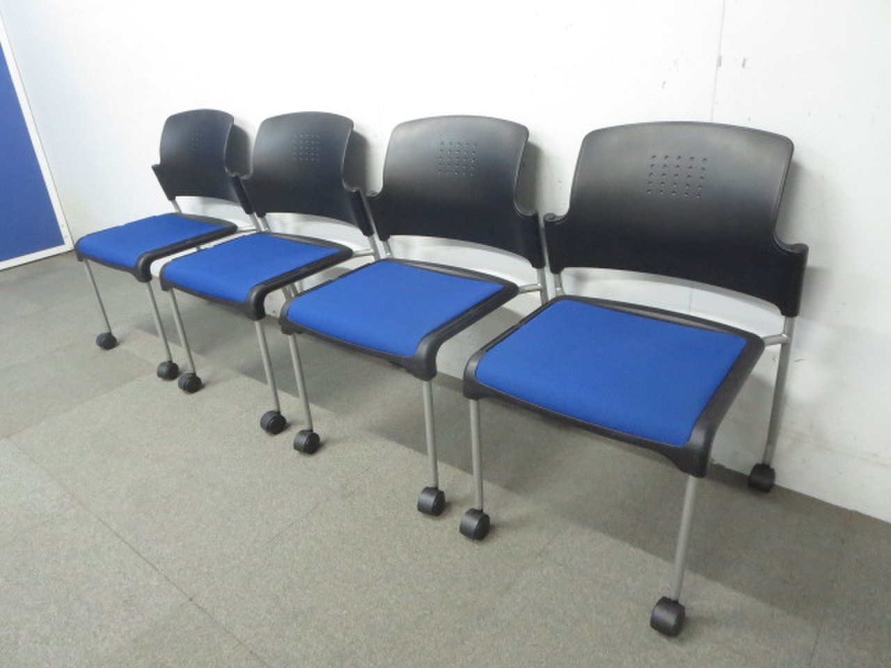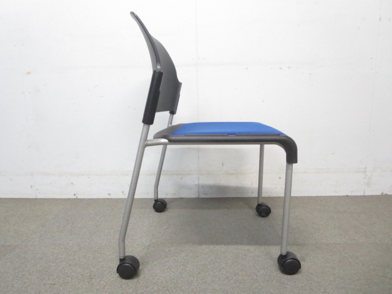 【スムーズに動かせる!】■スタッキングチェア ブルー キャスター付!- 川崎店