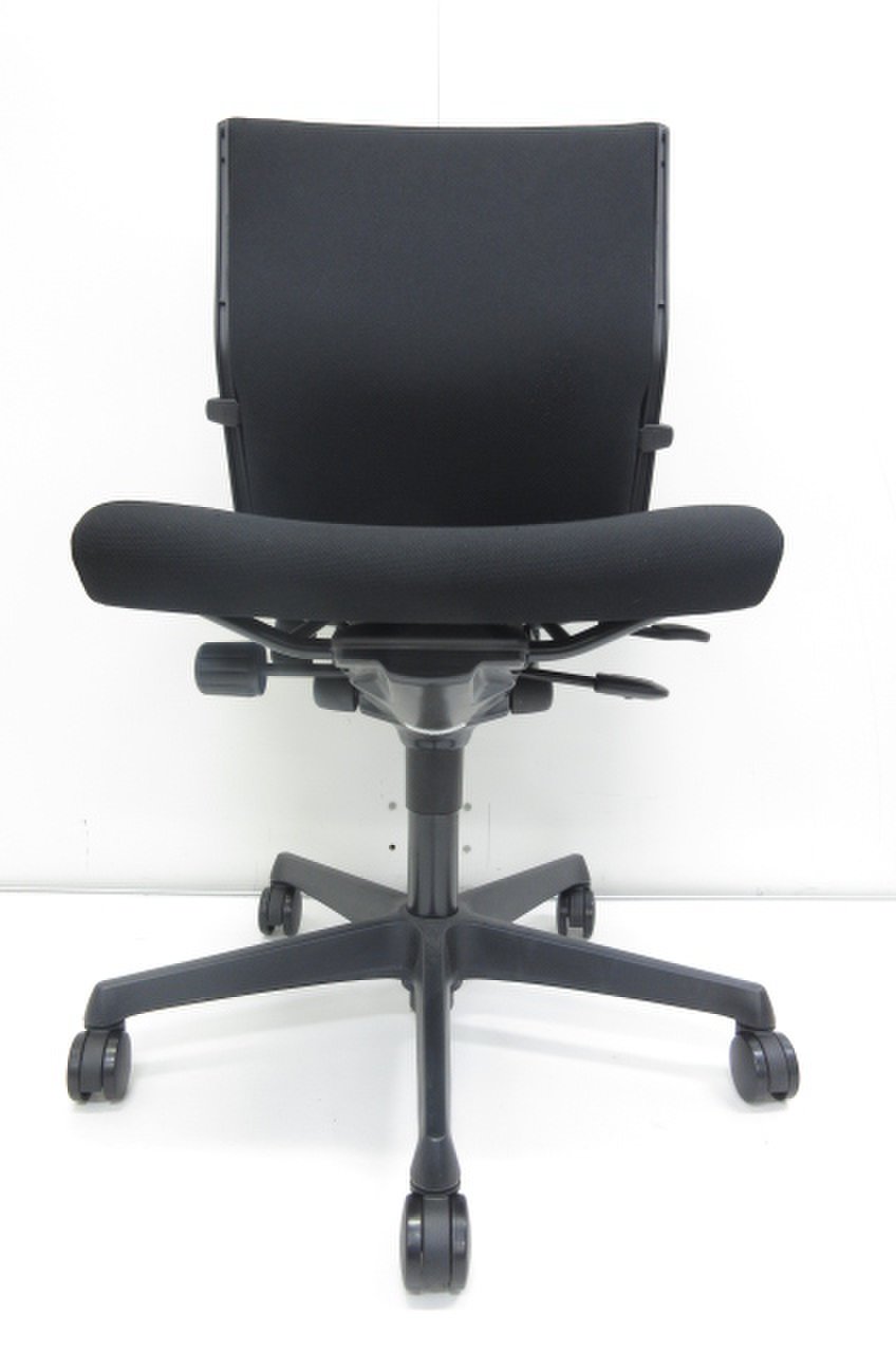 オカムラ エスクード ローバック クッションタイプ 人気のブラック×ブラックフレーム ランバーサポート搭載で安定感のある機能面と座り心地