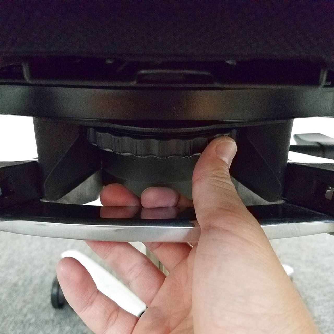 座面裏のダイヤルを回すことで座面が前に傾けることができます。