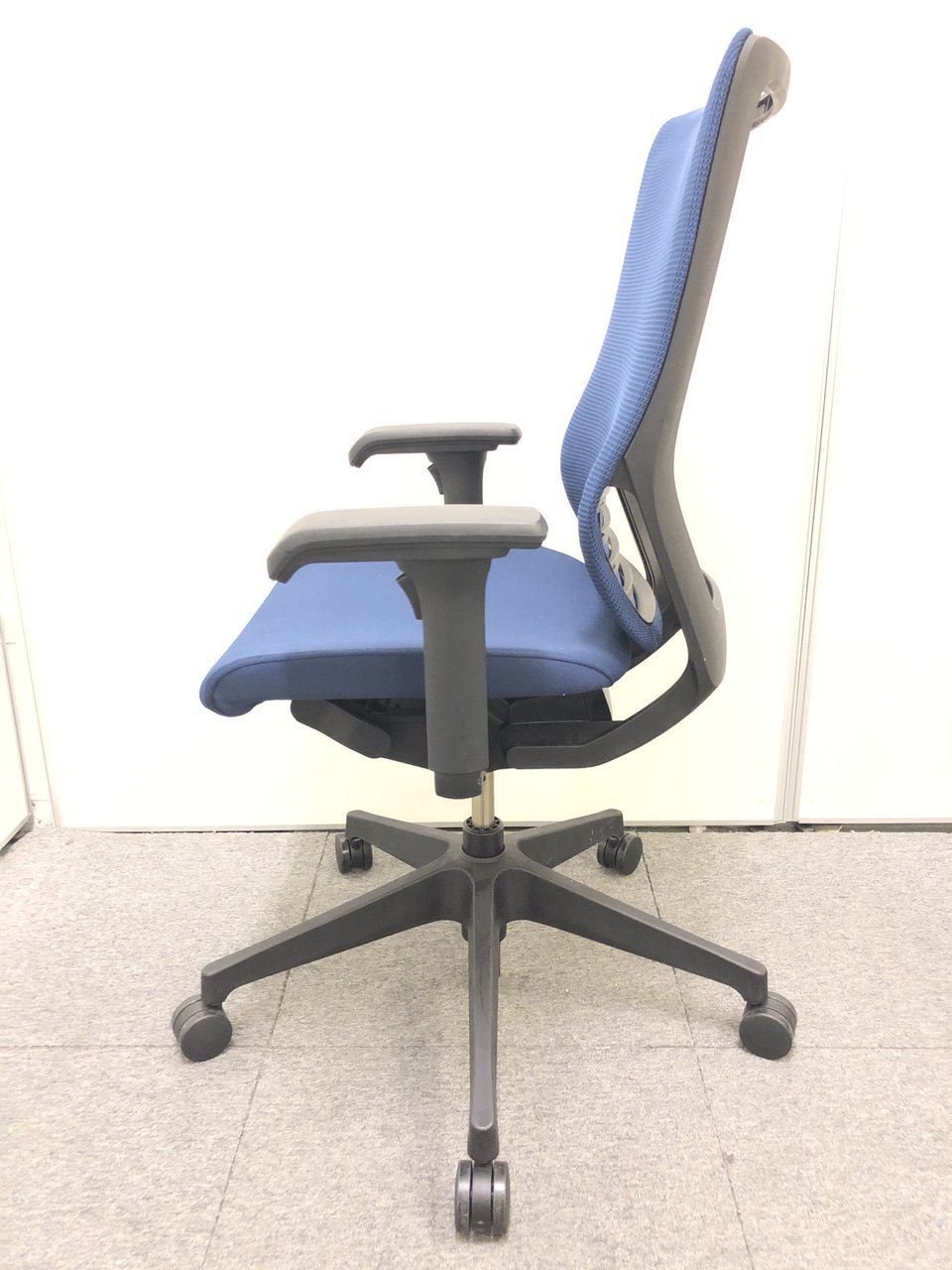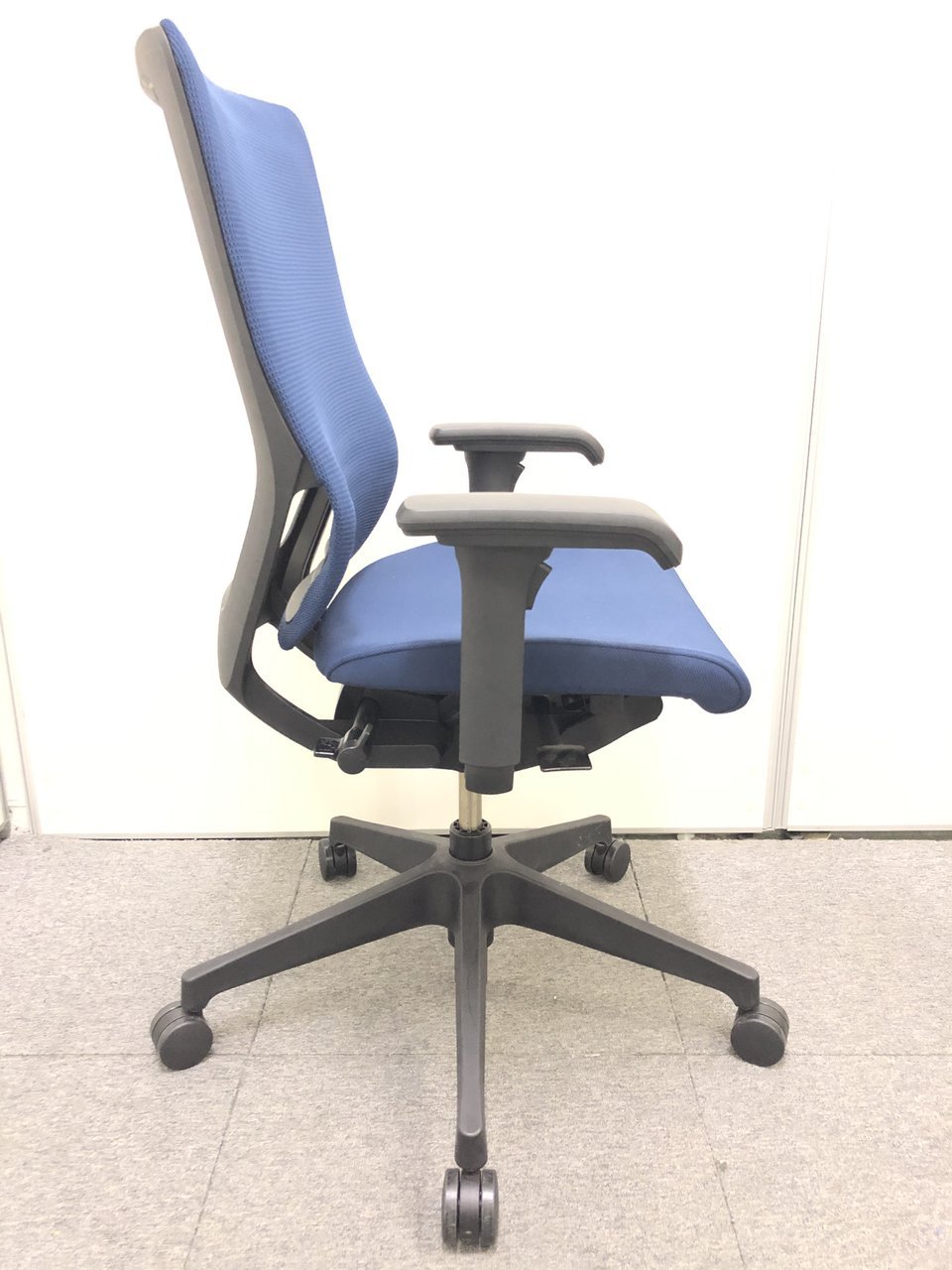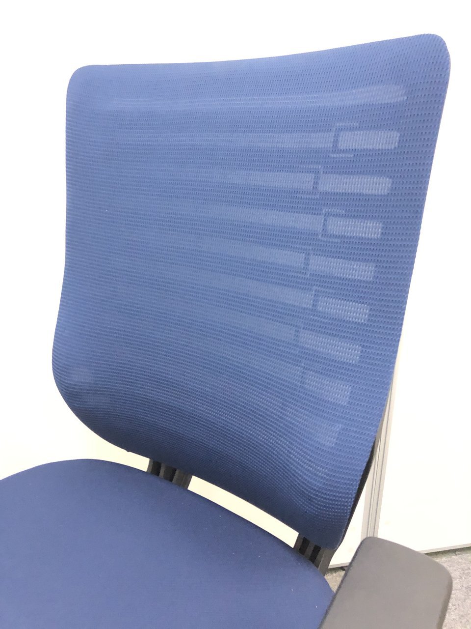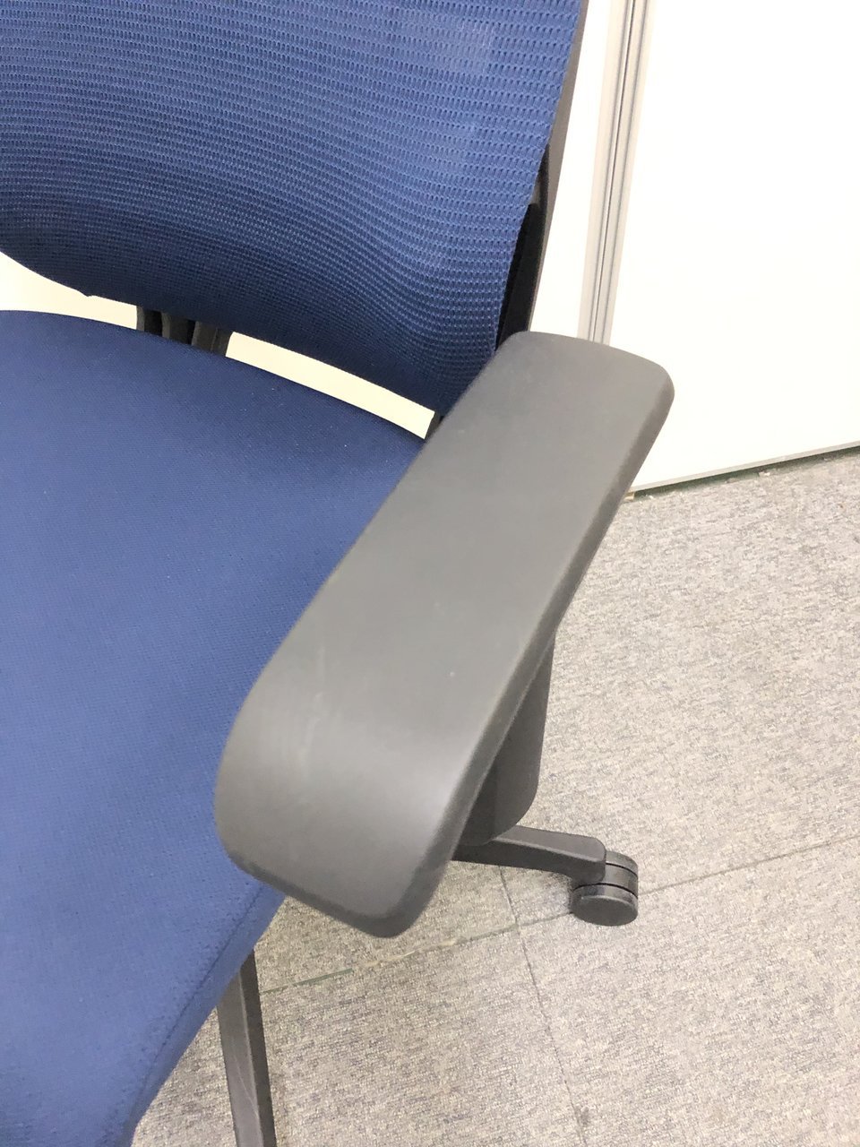 【倉庫在庫】イトーキの肘付きハイバックチェア。人気のブルー。(色あせ等の若干クセが強いです)- 神戸・三宮店