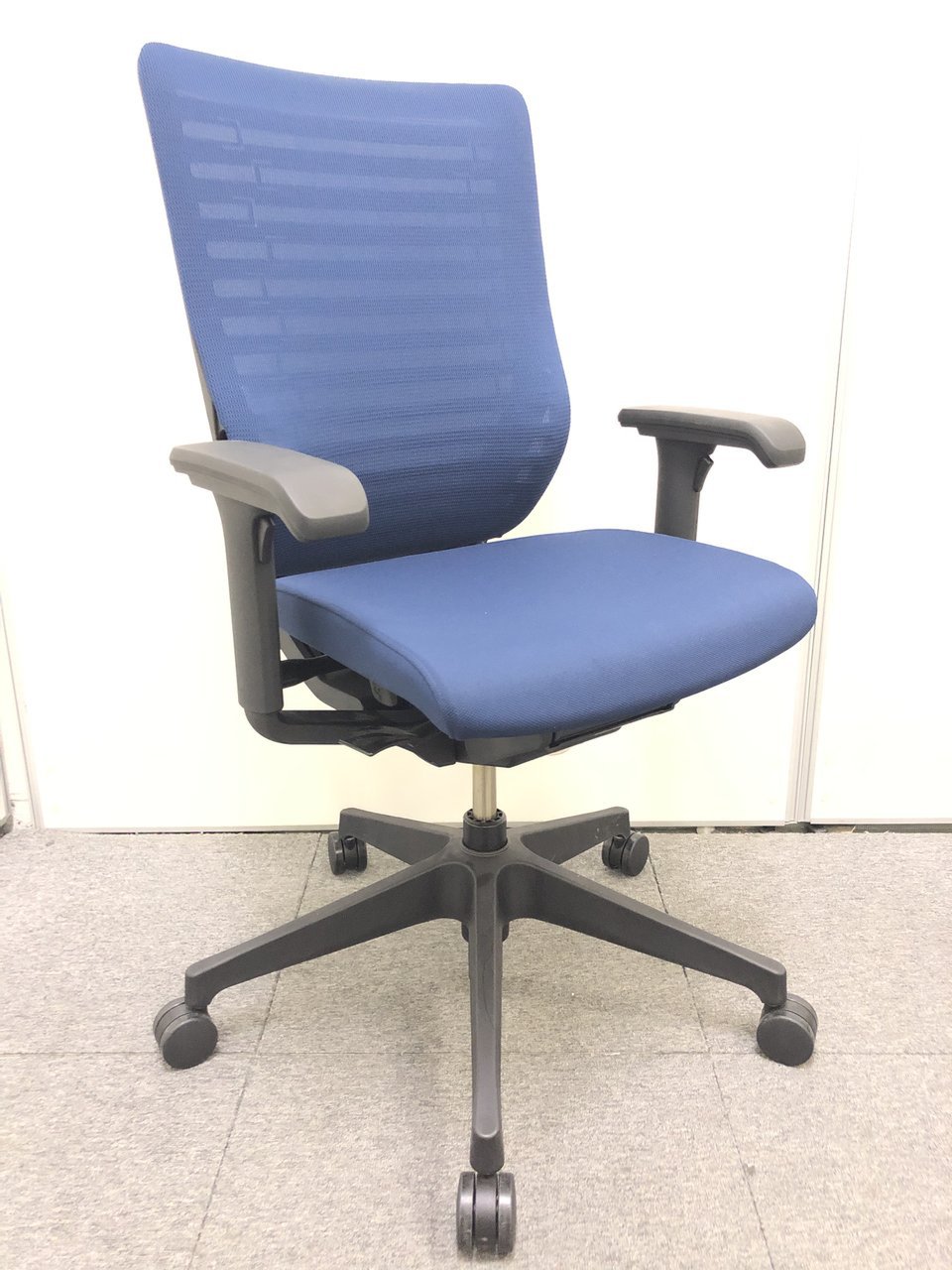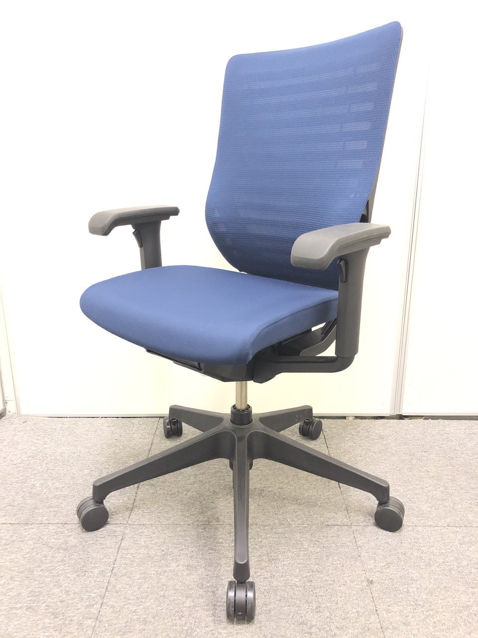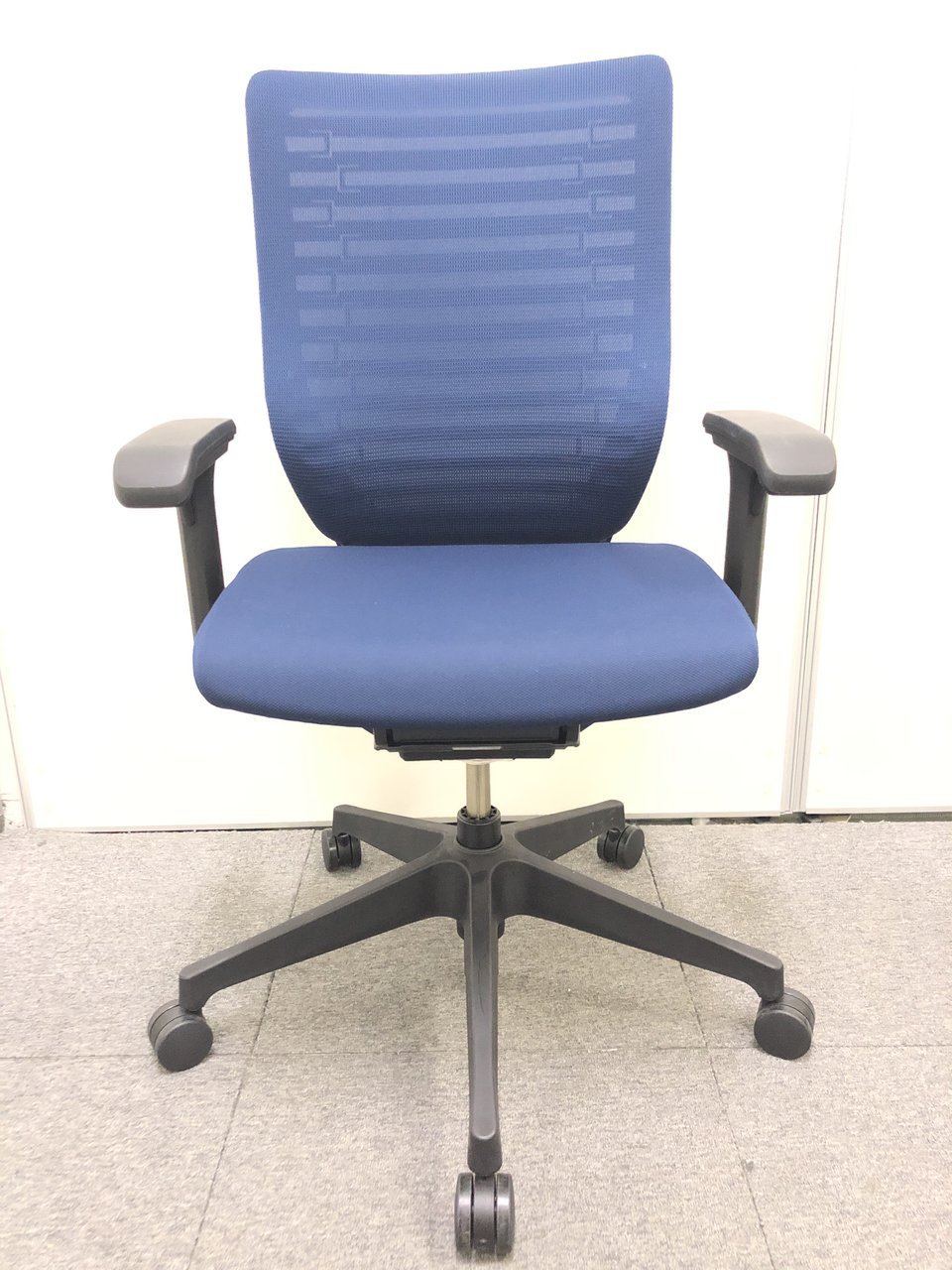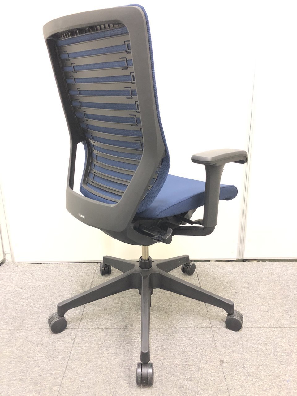 【倉庫在庫】イトーキの肘付きハイバックチェア。人気のブルー。(色あせ等の若干クセが強いです)- 神戸・三宮店