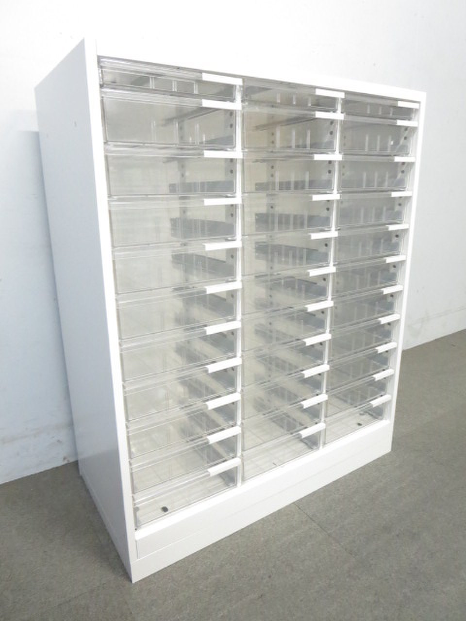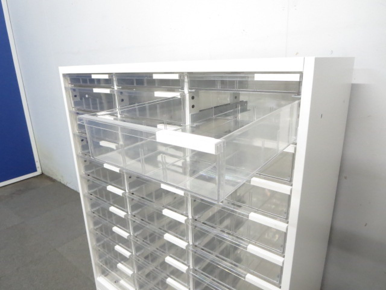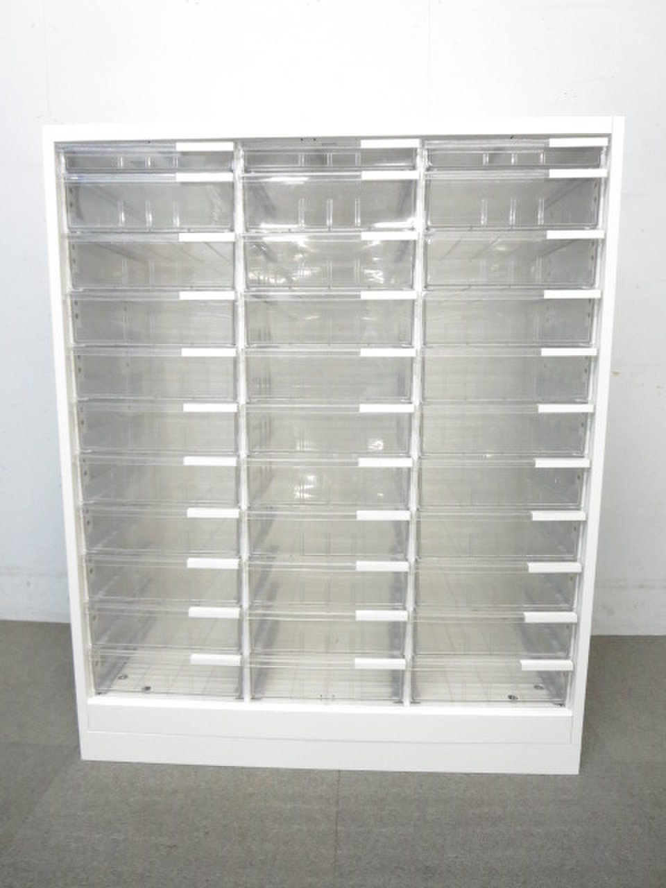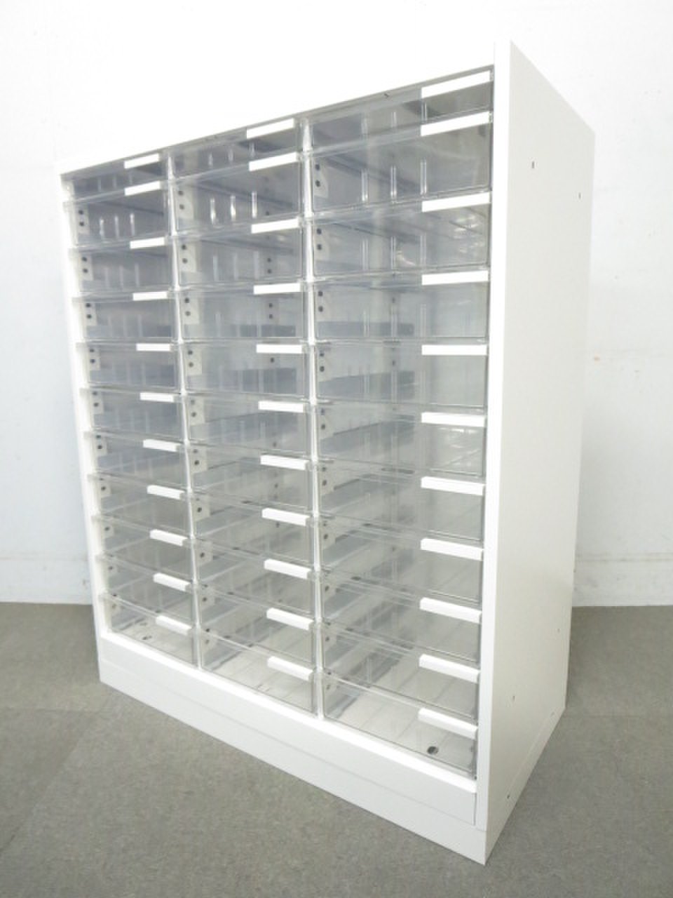 【書類や小物をスッキリ整理!】■イトーキ製 クリスタルトレイ書庫 ホワイト【浅型1段・深型10段】- 川崎店