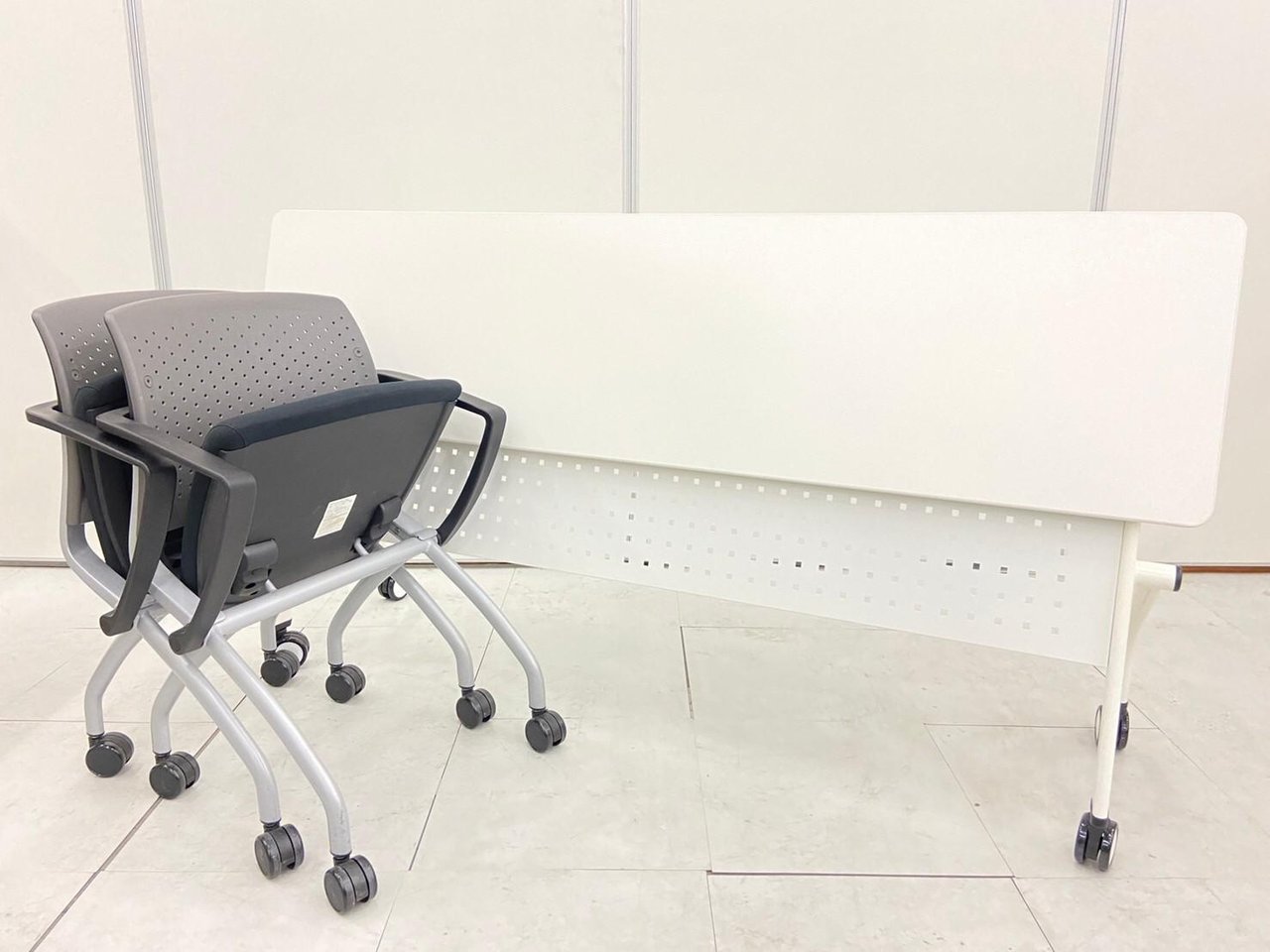 【80セット限定】新品フラップテーブル+中古ネスタブルチェア×2脚のお得なセット商品!!- 全店共通商品