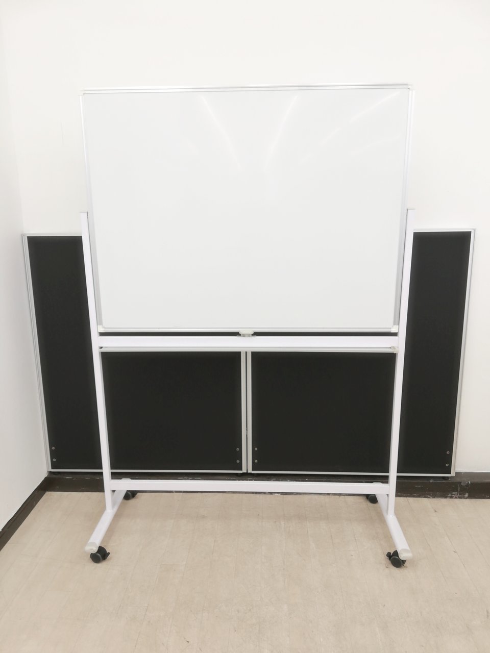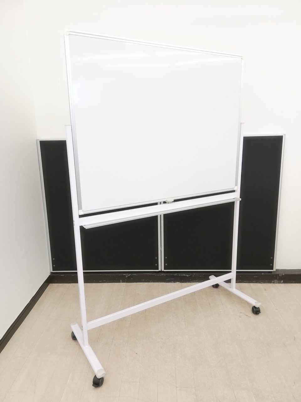 【両面使用可能】キャスター付き移動楽々コンパクトなホワイトボード※粉受け端部品欠品◆ノンブランド品- 春日部・越谷店