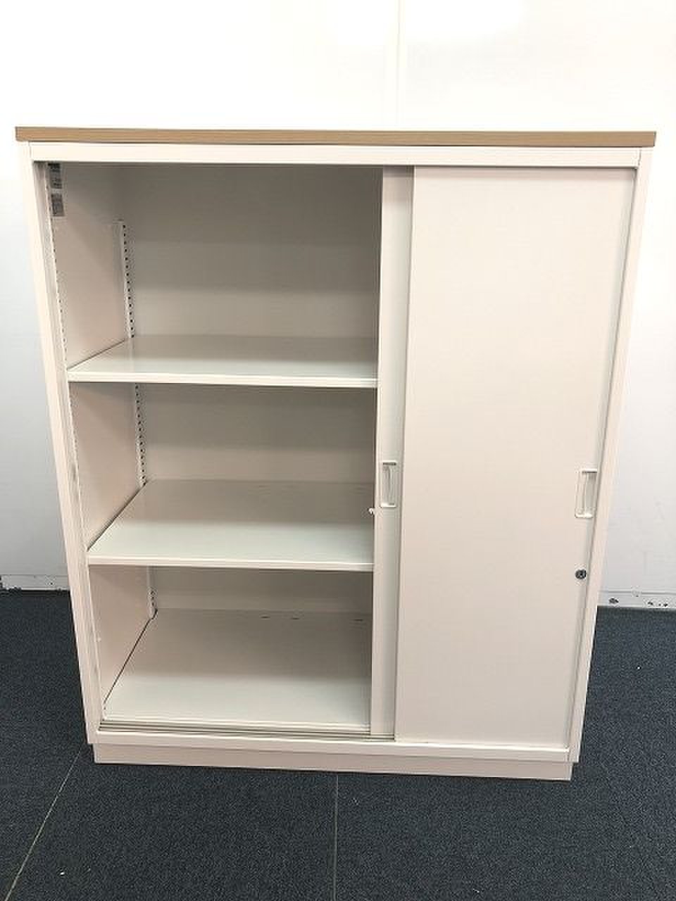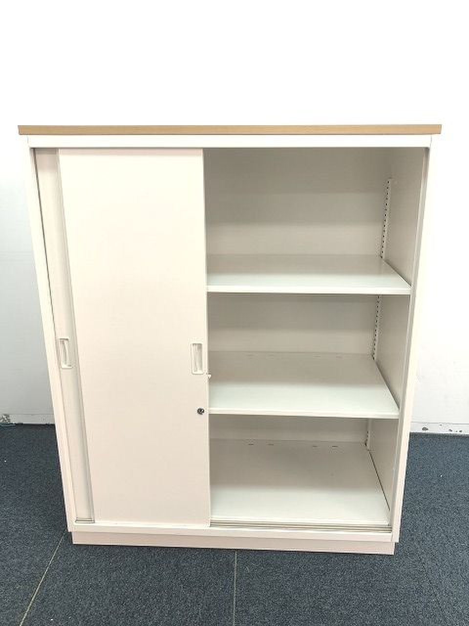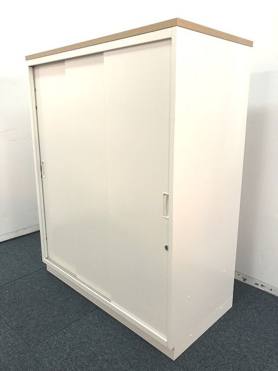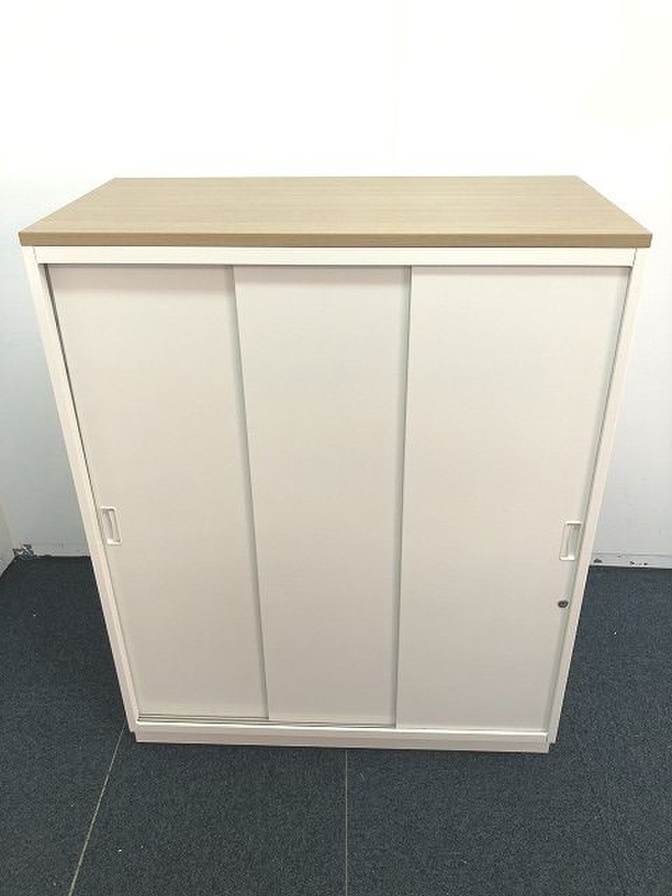 【イトーキ製の開閉スペースを確保した人気のキャビネット!】■3枚引き違いキャビネット ■イトーキ ■シンライン ■幅800mm×奥行き450mm×高さ1100mm 鍵付き書庫 オフィスバスターズ東大阪店
