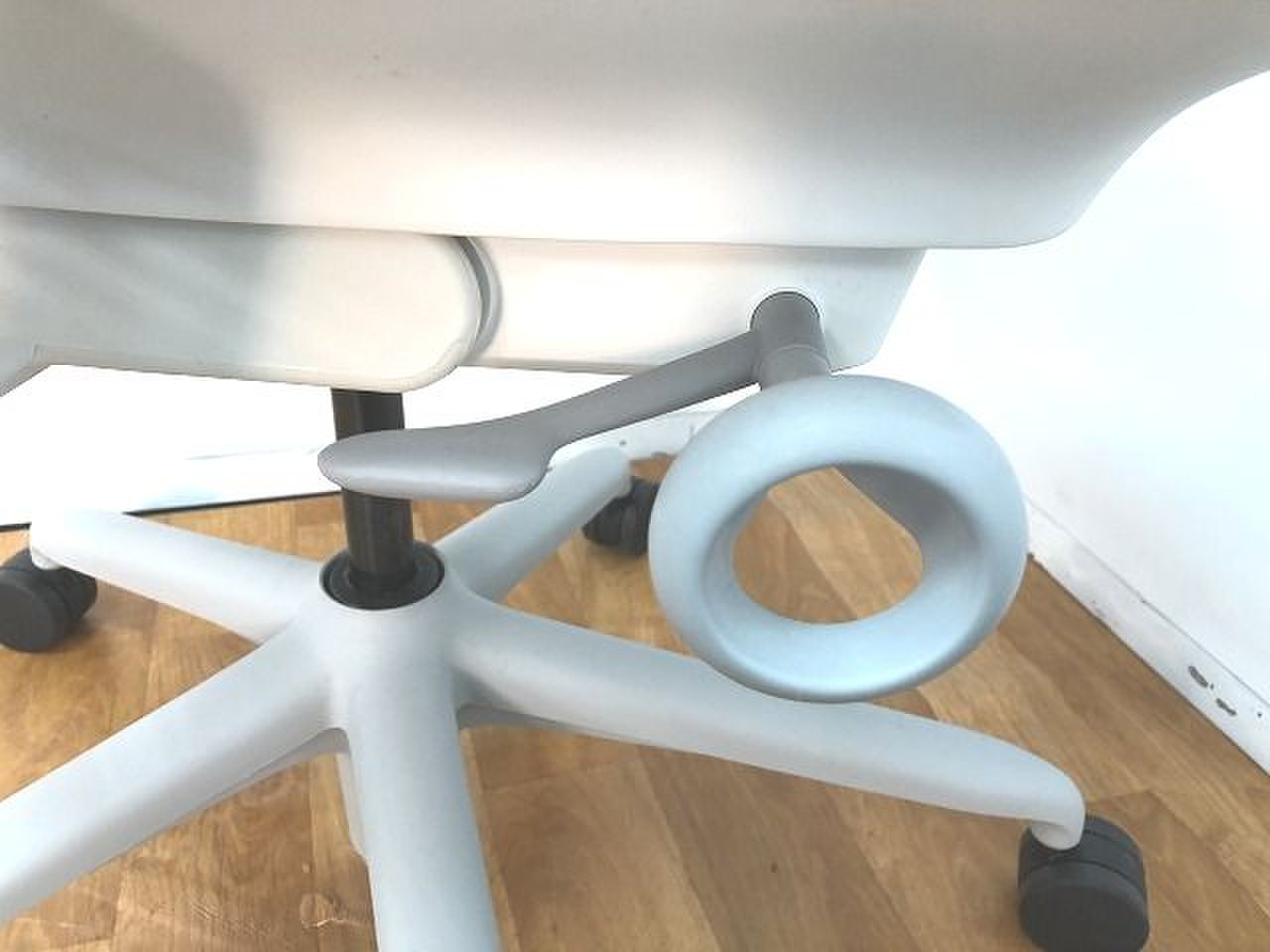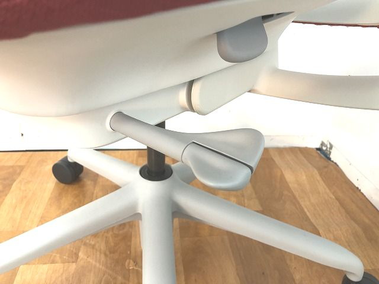 - 座ったまま、レバー操作一つで、簡単に座面を前傾できます。前傾姿勢を取ることが多いデスクワーカーに最適です。