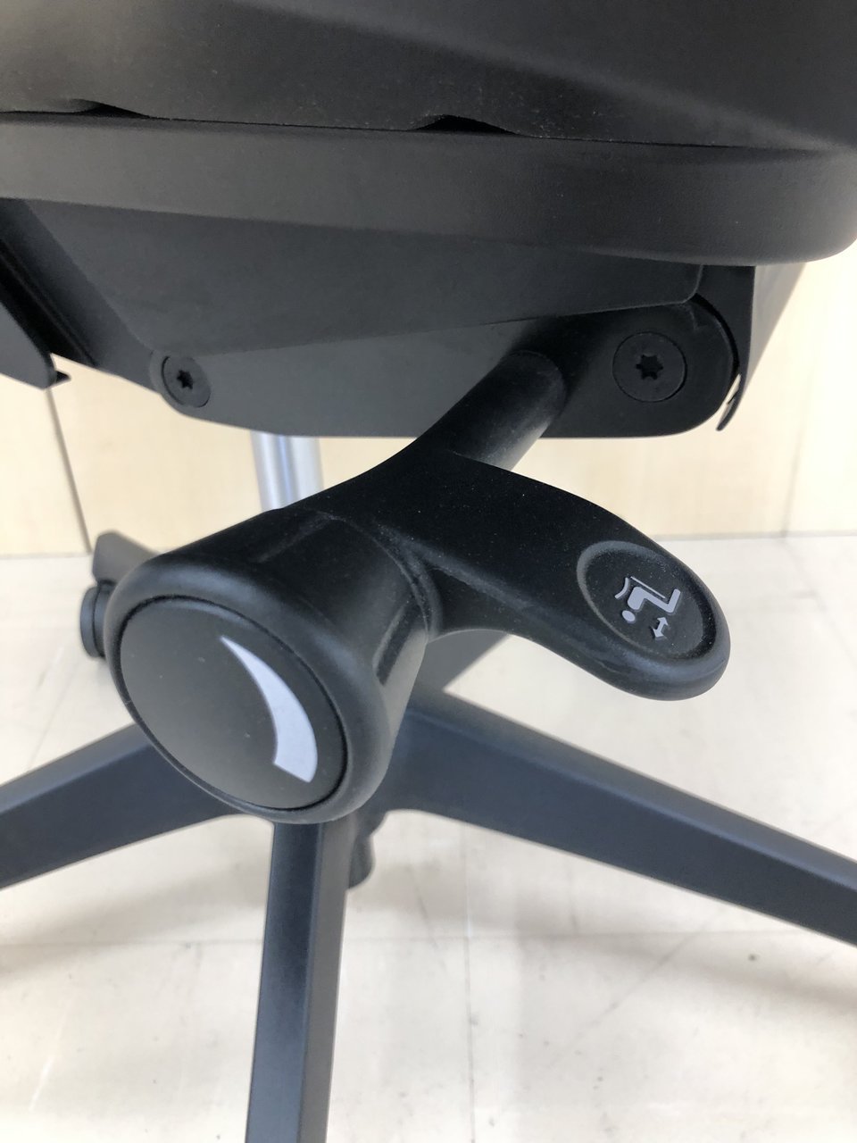 - 座面右下のダイヤル操作で、リクライニングの強弱調整が行えます。これまでのダイヤル式よりも、少ない回転数で、最弱?最強の調整が可能です。