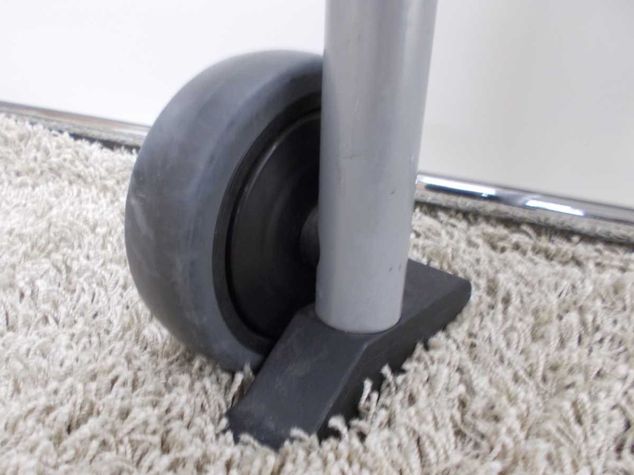 - 一部不具合あり天板歪み、アジャスター無し、キャスター使用不可ようなそのテーブルの本来の効用を果たすための機能以外の一部が使用不可な状態。(例、キャスターロッ ク機能使用不可、棚板無し等がある。)