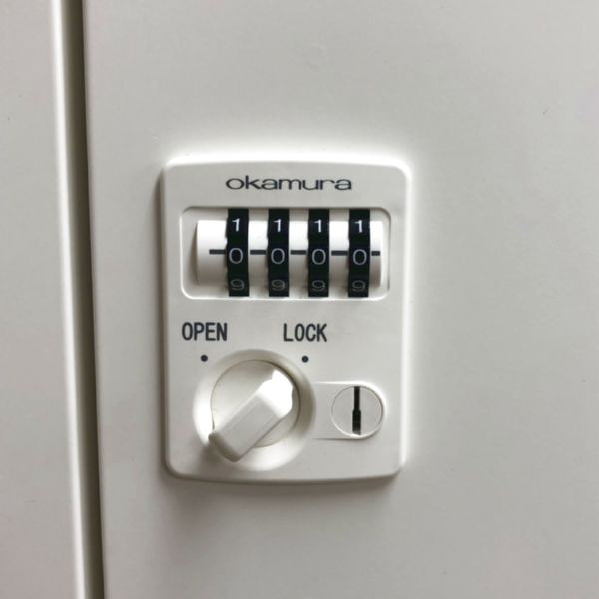 ダイヤルロッカー パーソナルロッカー 10人用 オカムラ ホワイト ポスト付きで便利- 名古屋千種店