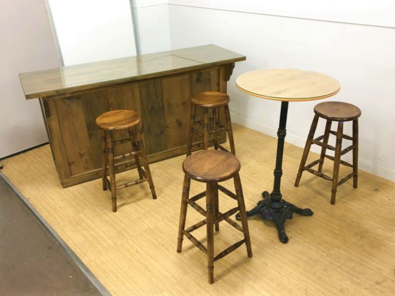 カウンター1台と丸テーブル1台とイス4脚のセットになります。