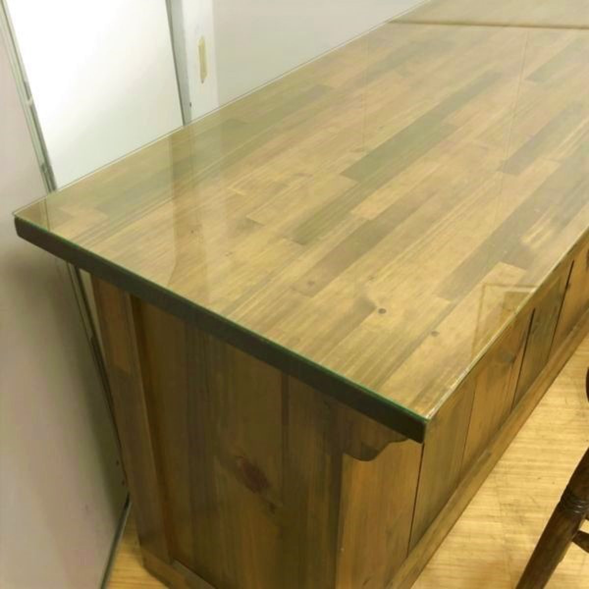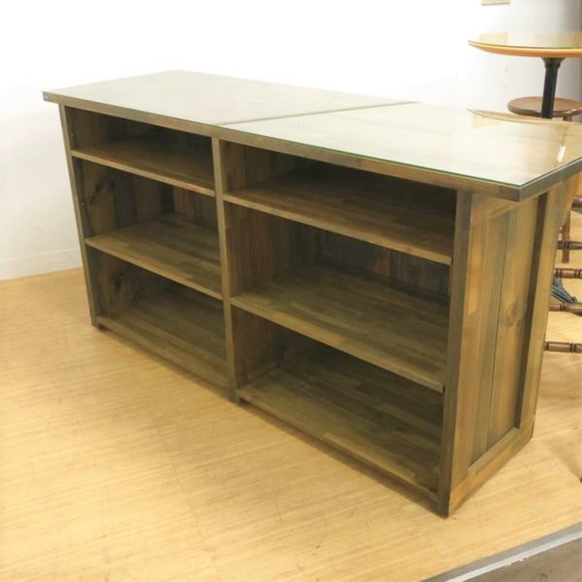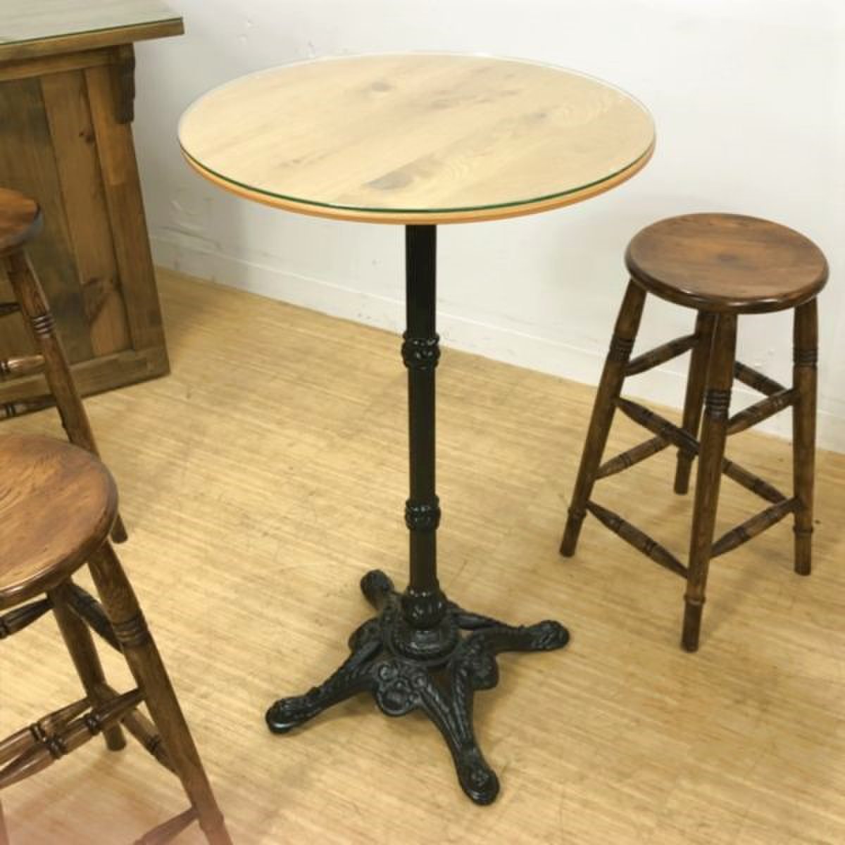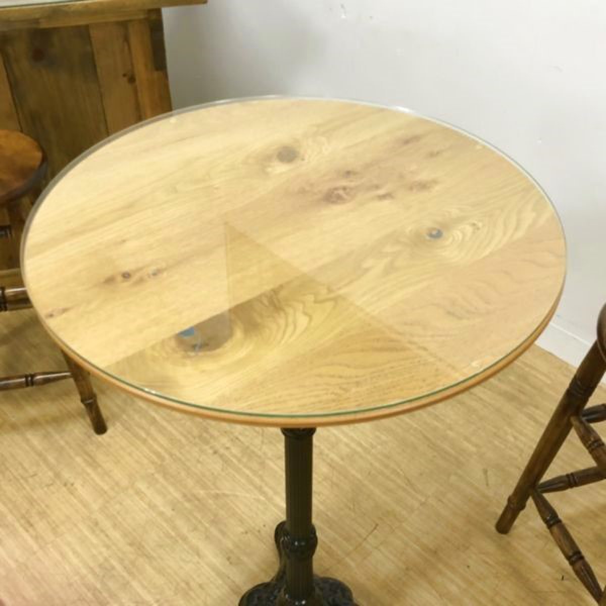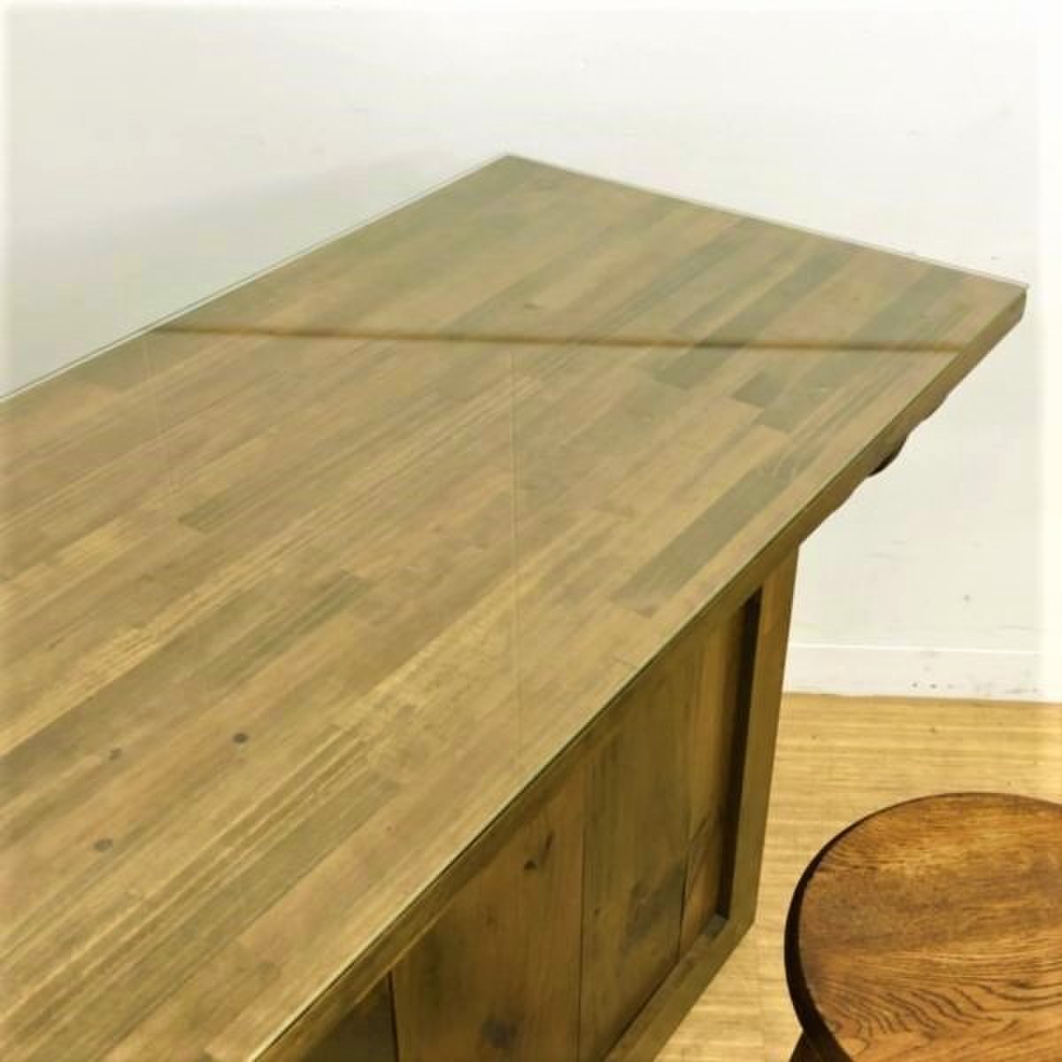 カウンターと丸テーブルはガラス天板が付属しており、