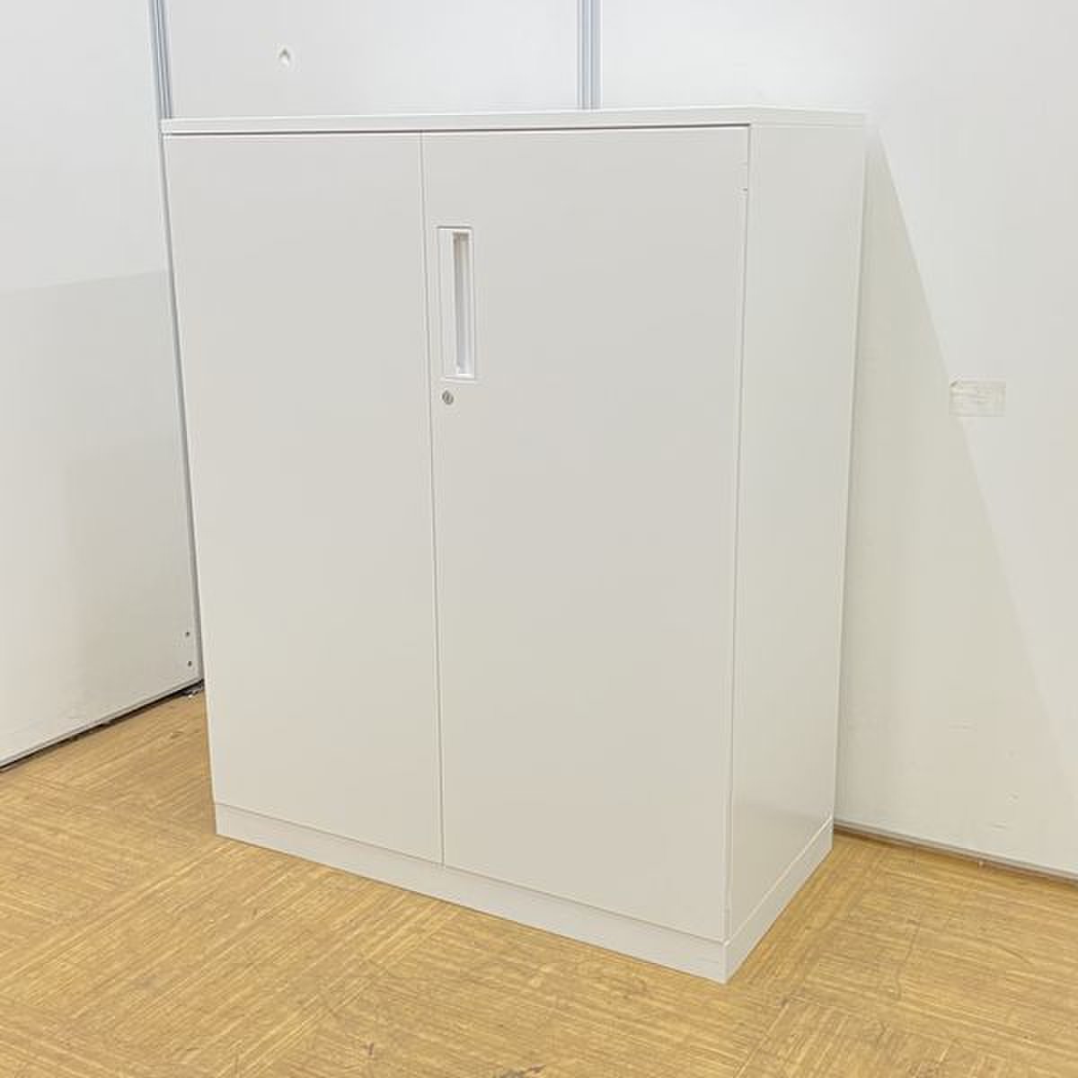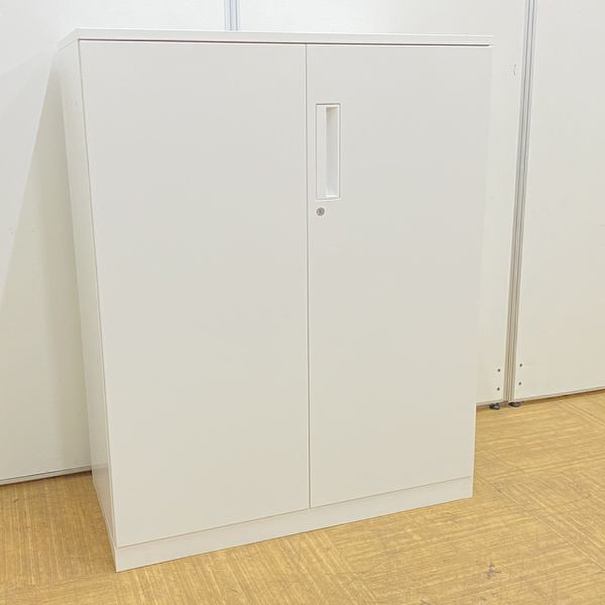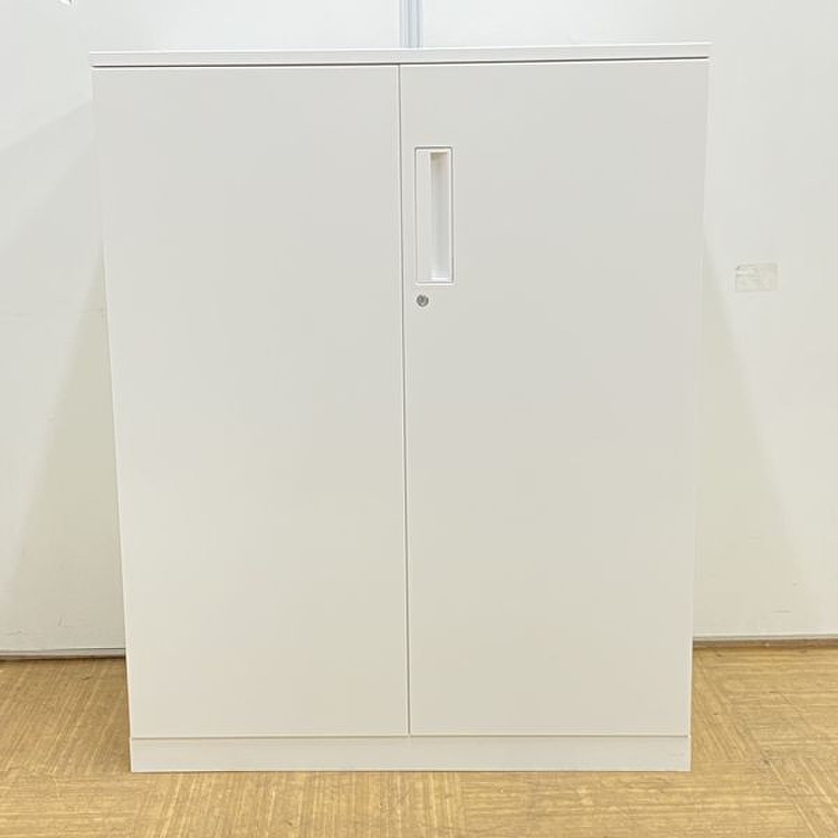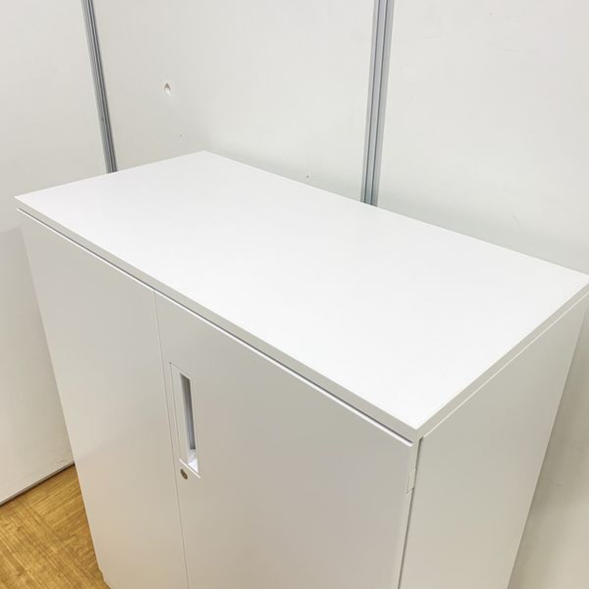 【収納物がひとめで分かる両開き戸タイプ!】■コクヨ(KOKUYO)製 エディア(EDIA)シリーズ 両開き書庫 ローキャビネット H1130㎜ ■天板・ベース付 ■ホワイト ■シリンダー錠【IB】