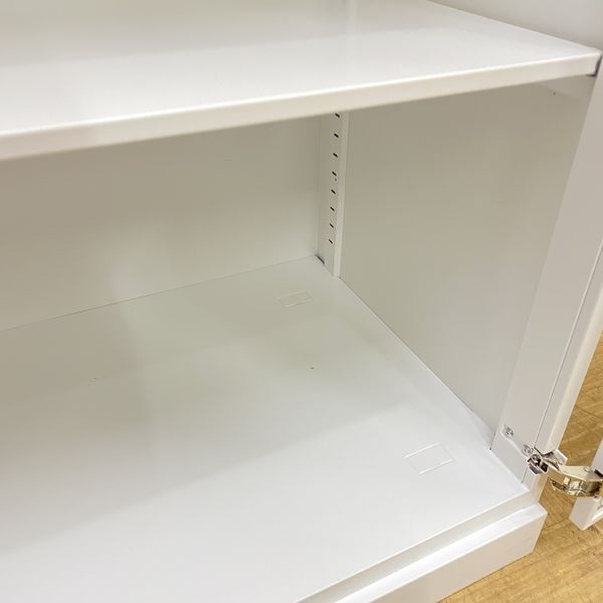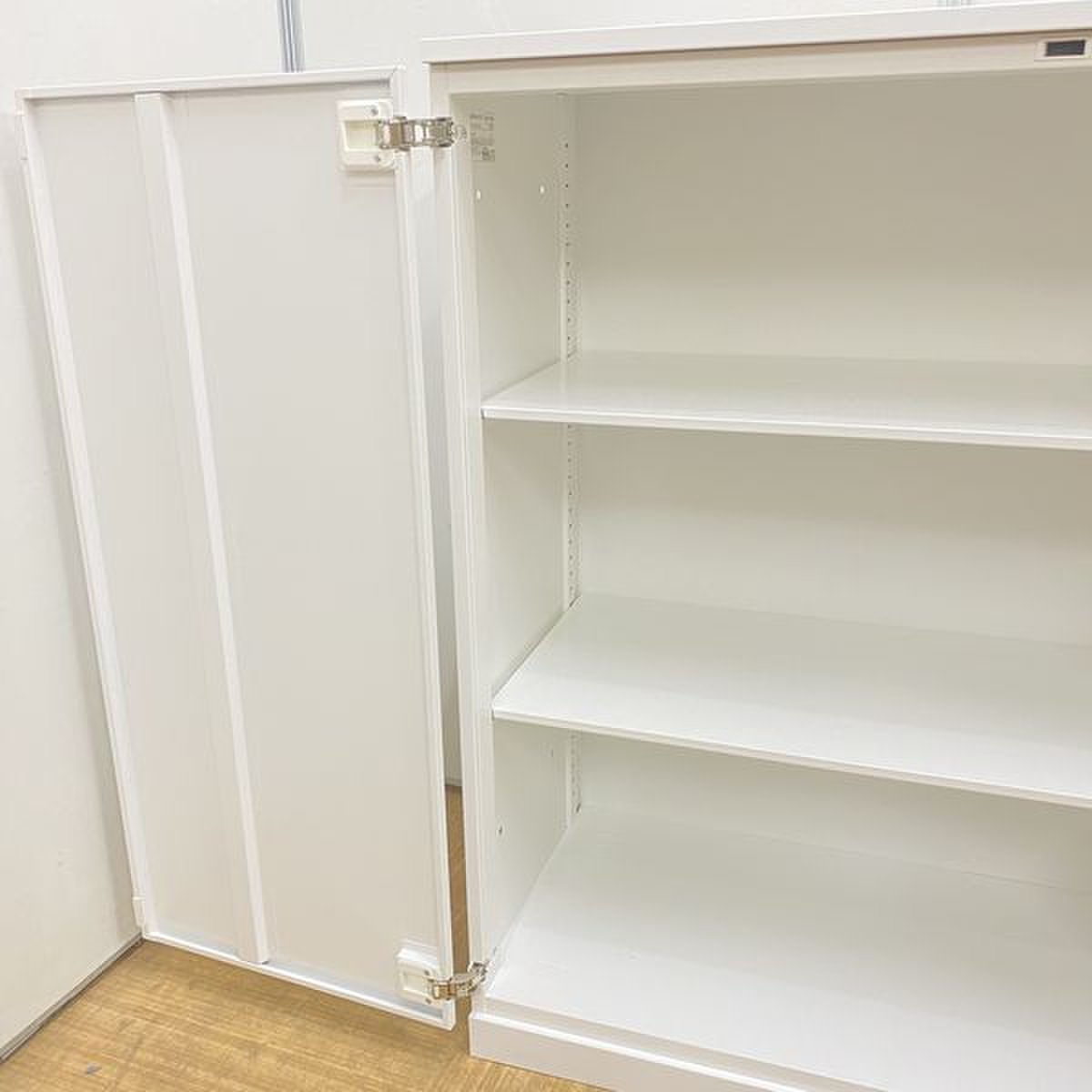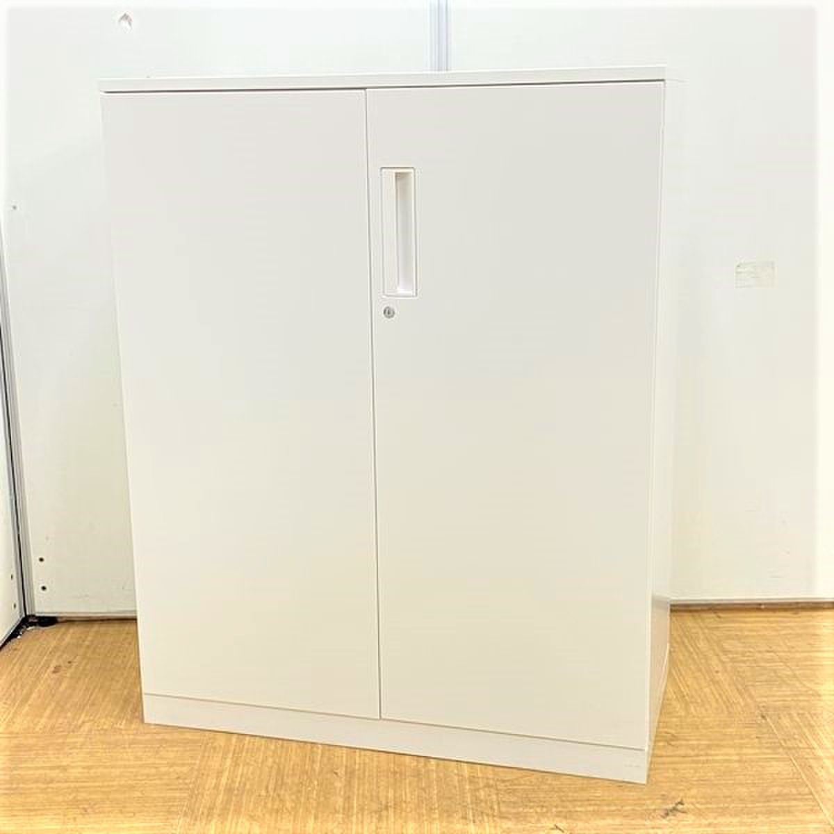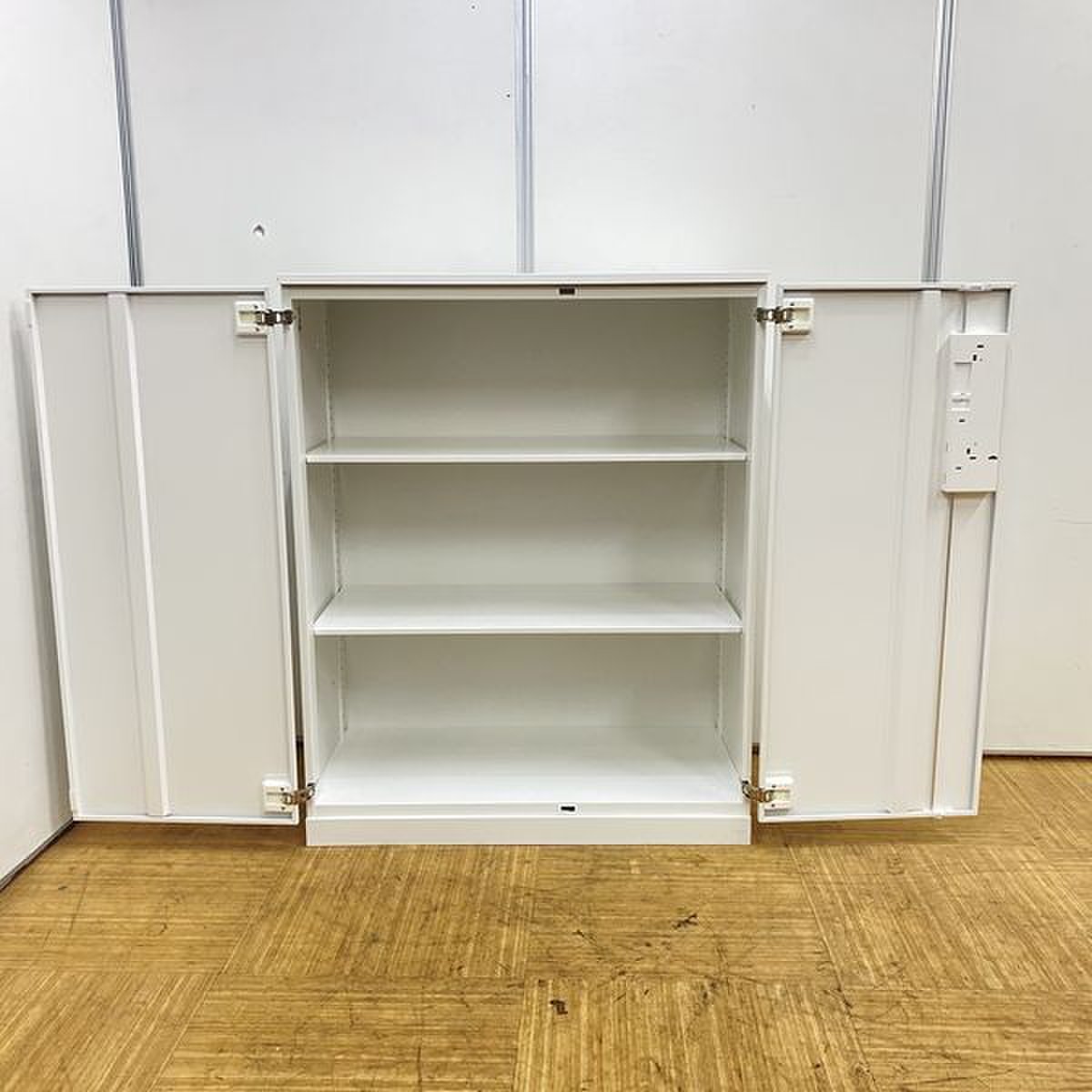 【収納物がひとめで分かる両開き戸タイプ!】■コクヨ(KOKUYO)製 エディア(EDIA)シリーズ 両開き書庫 ローキャビネット H1130㎜ ■天板・ベース付 ■ホワイト ■シリンダー錠【IB】
