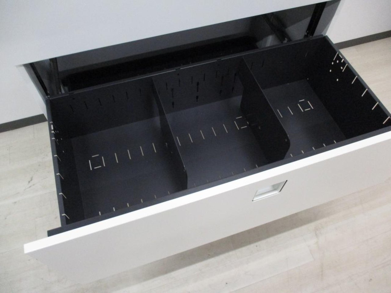 スライド式の扉+引き出しタイプの便利な書庫セットが入荷!使い勝手抜群のハイキャビネットが入荷! ■オカムラ/レクトライン/ホワイト 2枚引き戸+3段ラテラルキャビネット