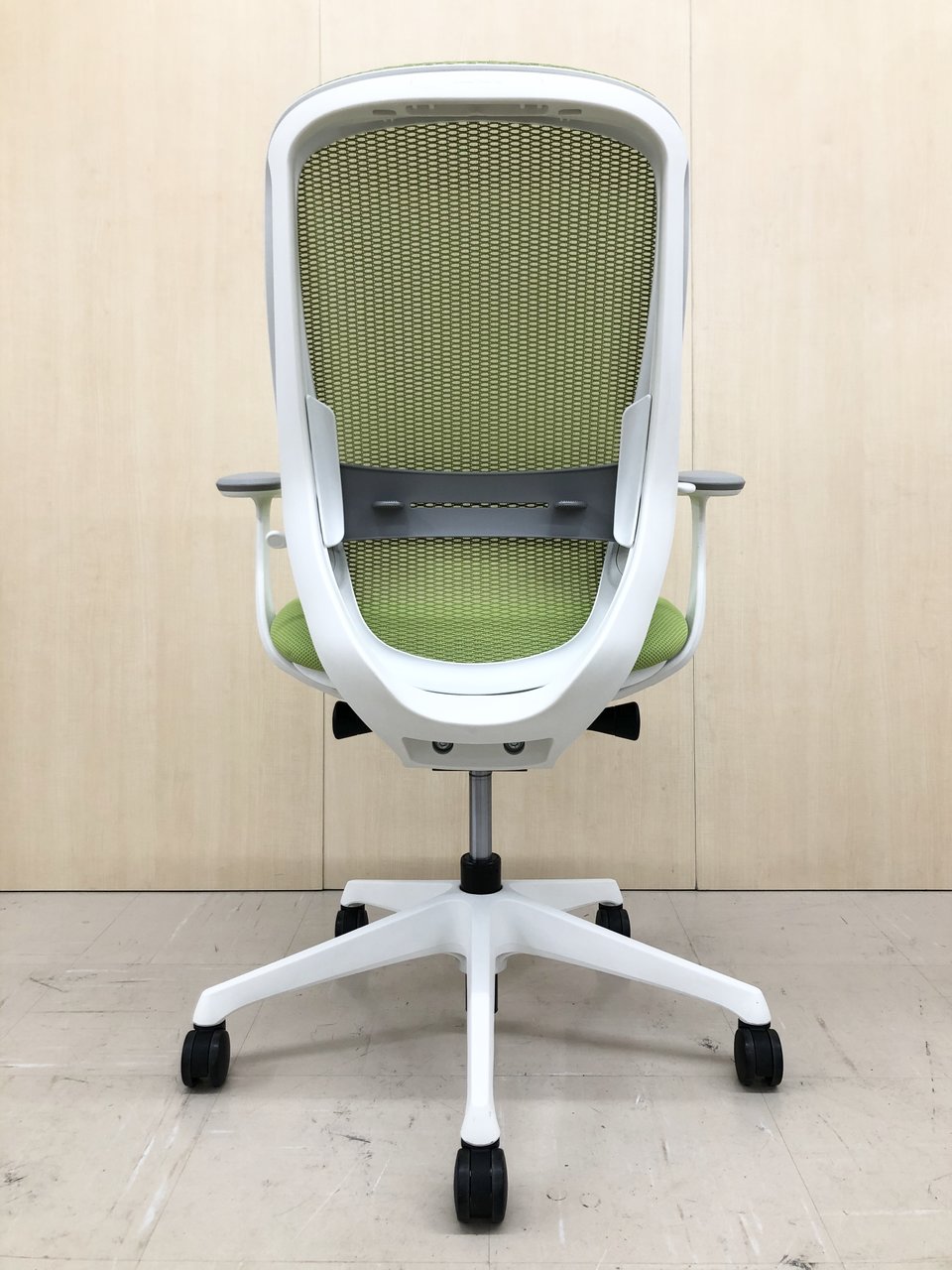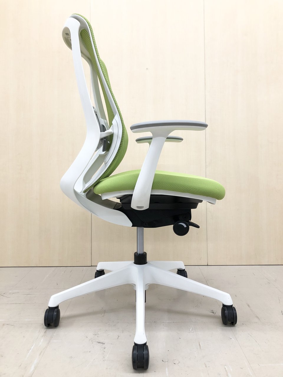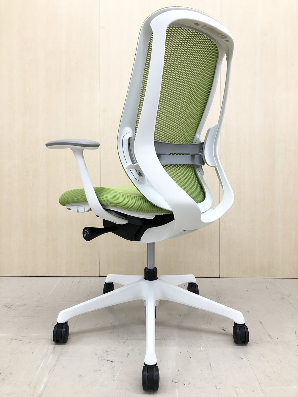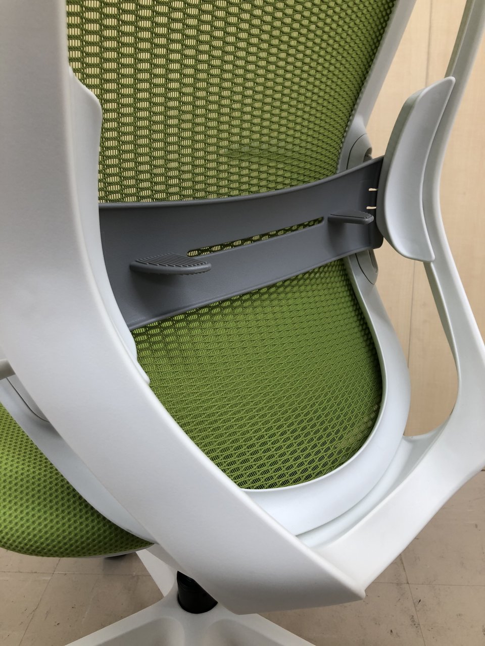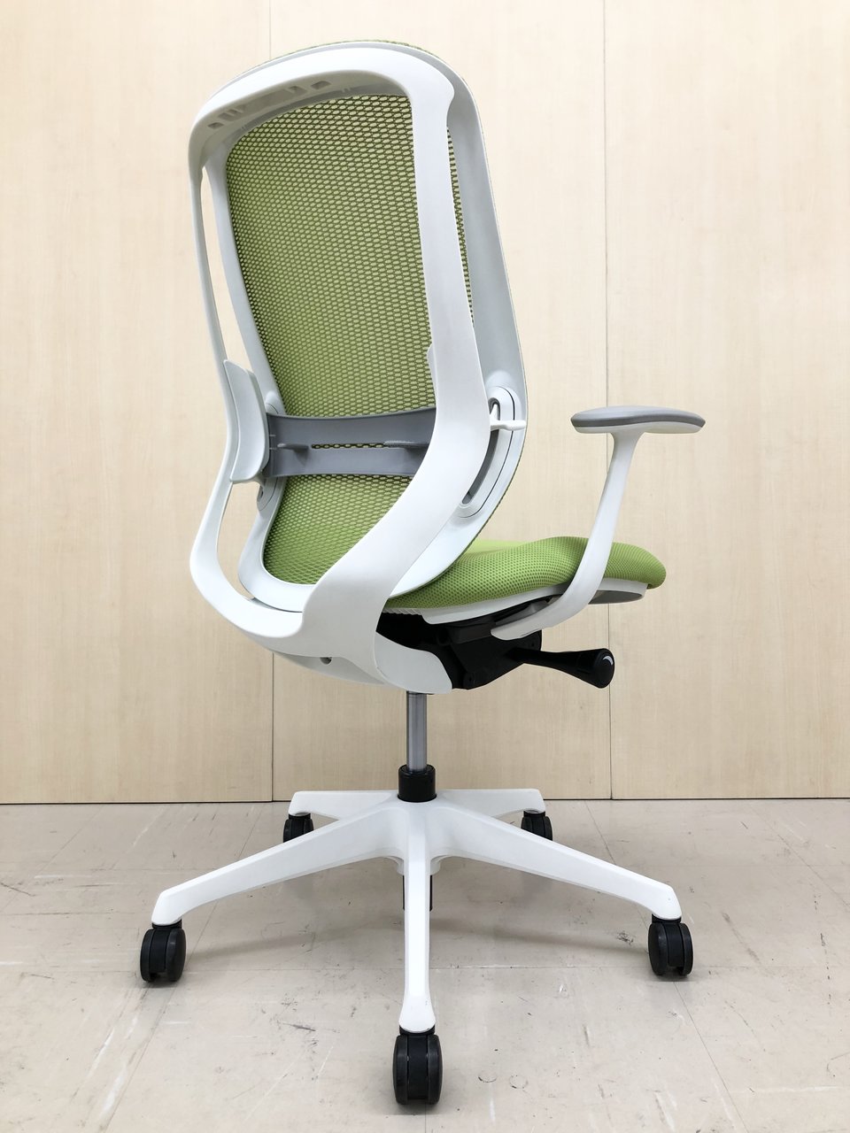 今、バロンより売れてます! ホワイトフレームのレアカラーです!オカムラ/シルフィー/グリーン/固定肘/ランバーサポート付き/肘パット新品交換済み【RP】- 埼玉本店