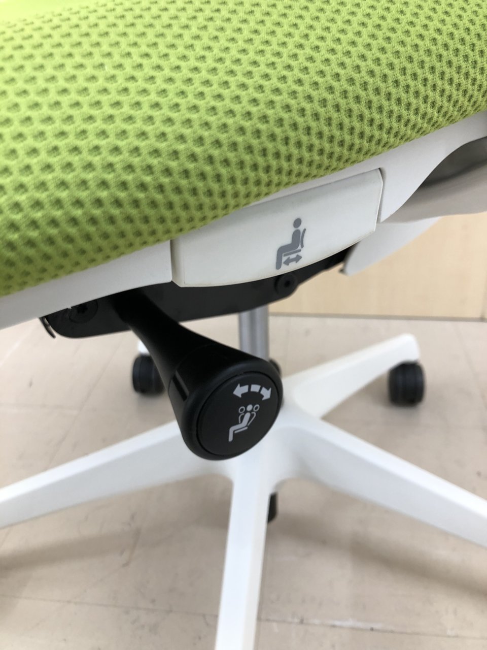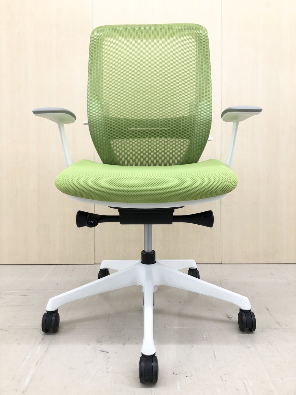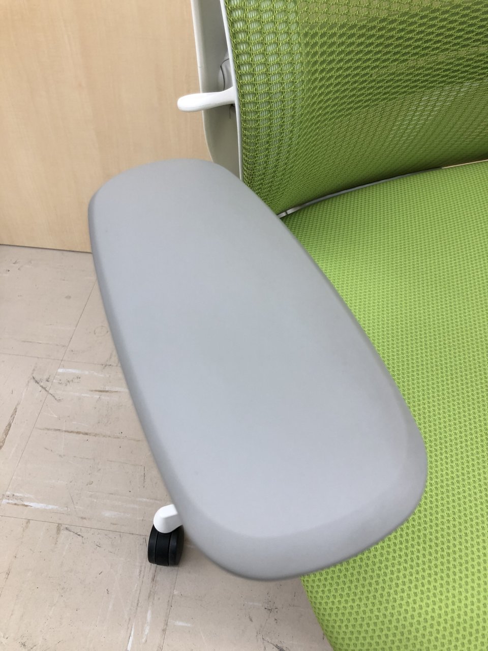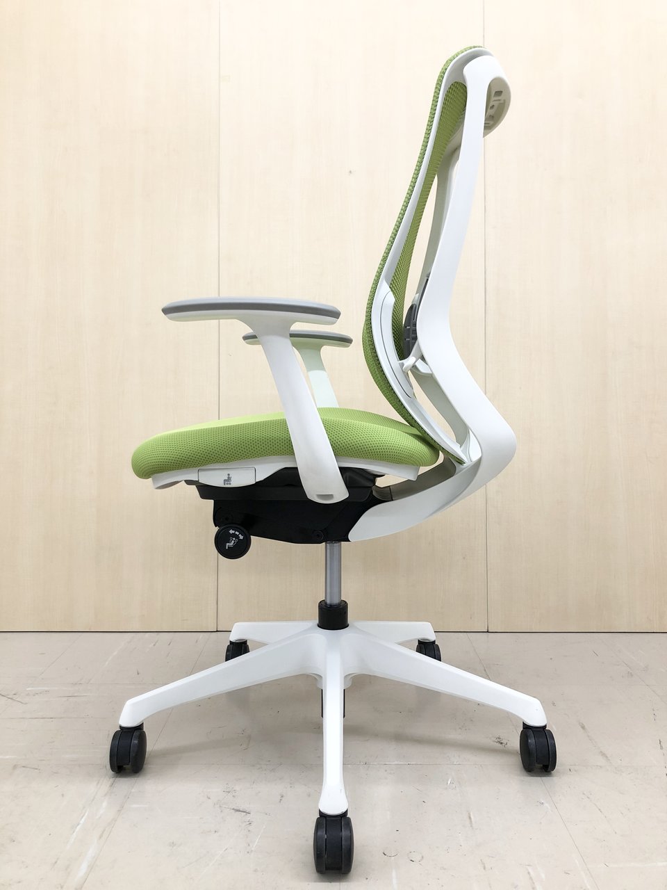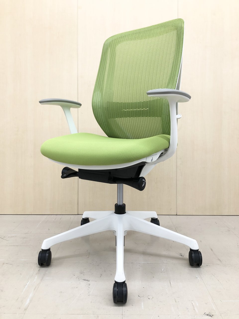 今、バロンより売れてます! ホワイトフレームのレアカラーです!オカムラ/シルフィー/グリーン/固定肘/ランバーサポート付き/肘パット新品交換済み【RP】- 埼玉本店