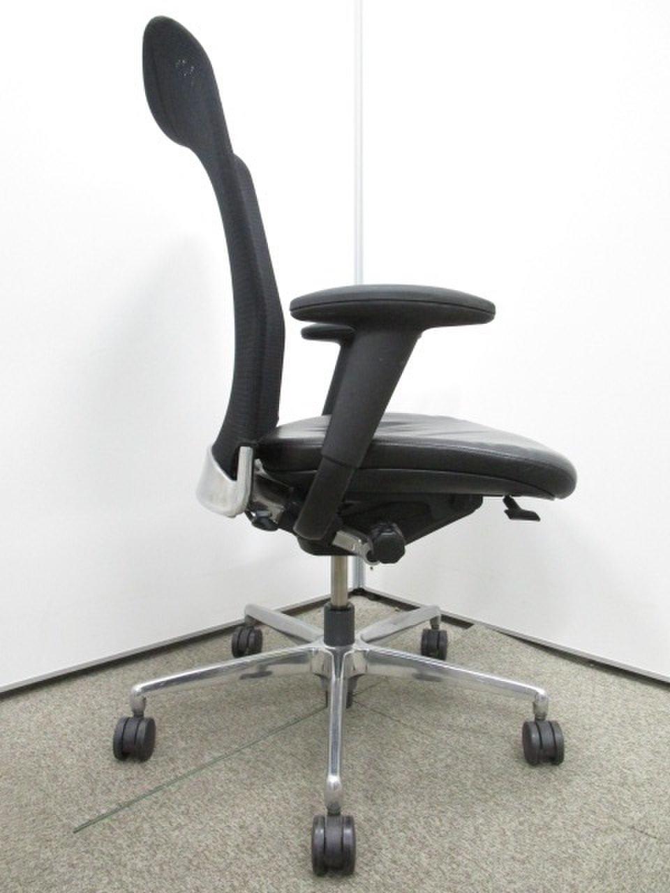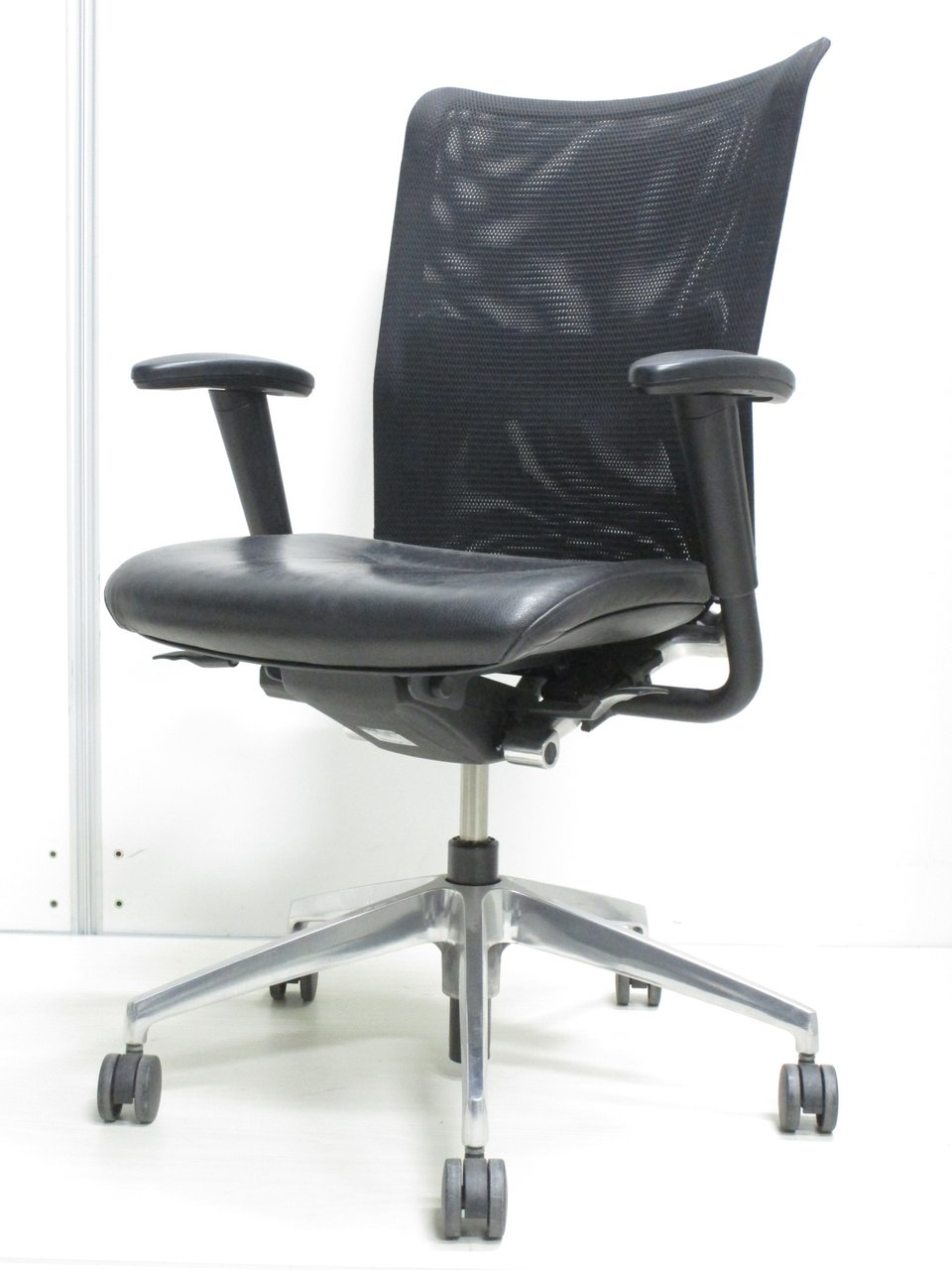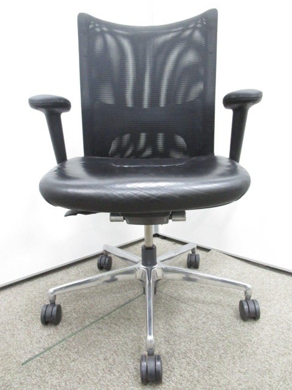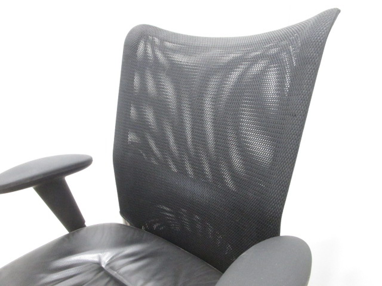 【肘傷あり】座面がレザー仕様の珍しいメッシュチェア。イトーキ銘品の『プラオ』チェアの後継機種。【倉庫在庫】サーキュラーバリューCO2削減量の算出について