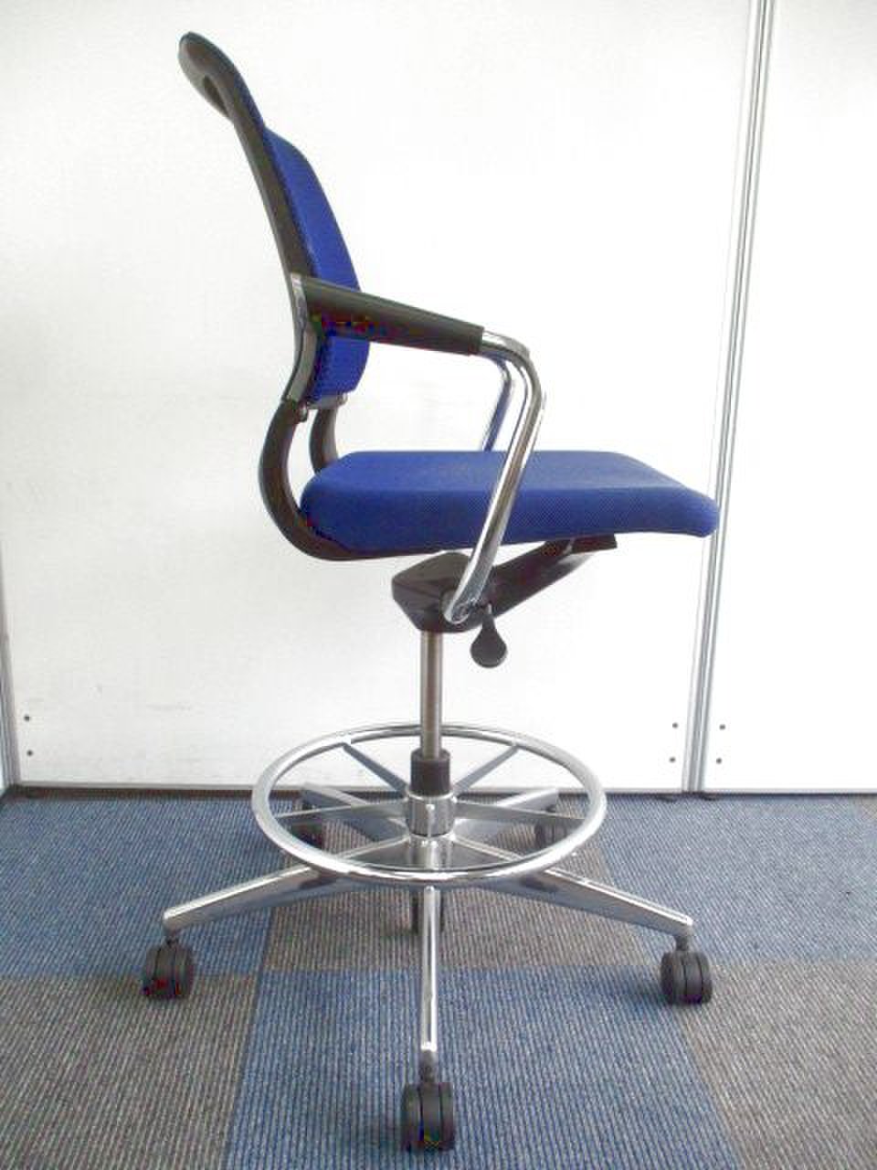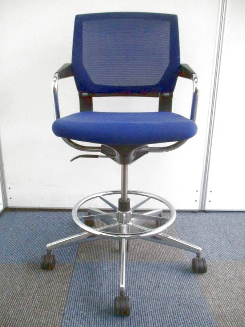 ブルーのハイチェアです。コクヨ製サテリテチェア。上下昇降可能です。- 神戸・三宮店
