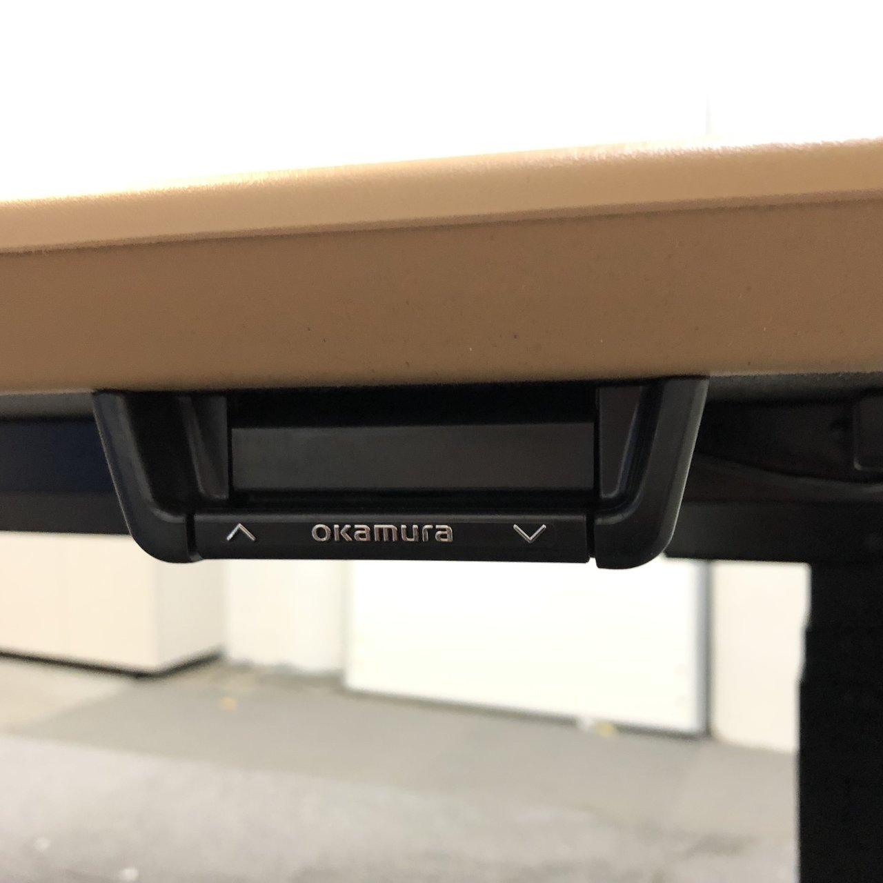オカムラ製のブラウンカラーの上下昇降デスク+高級チェアオカムラのモード4脚セット!