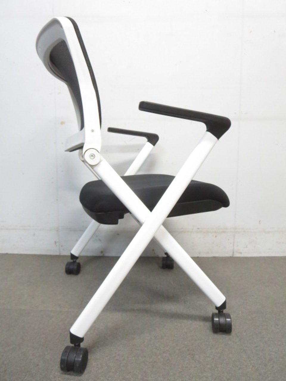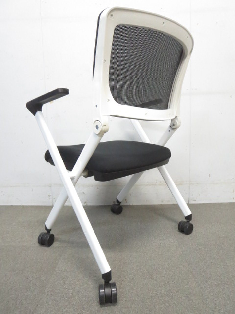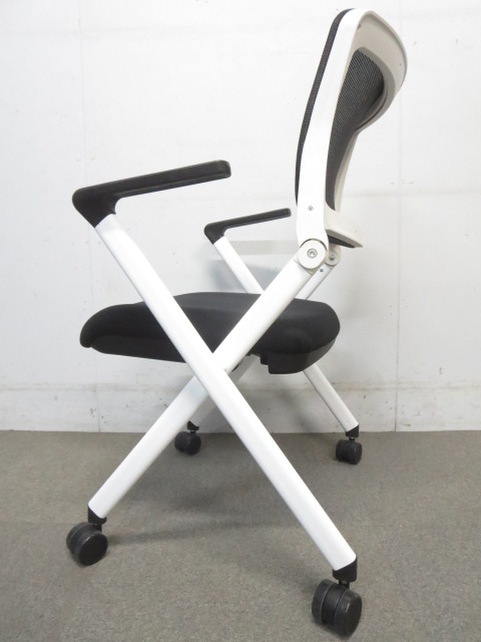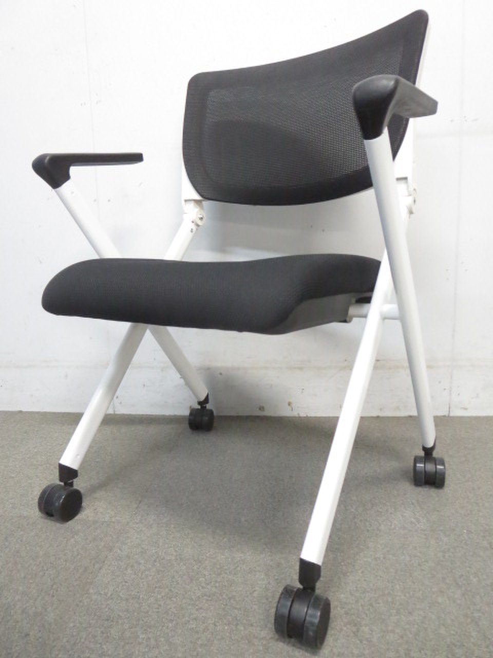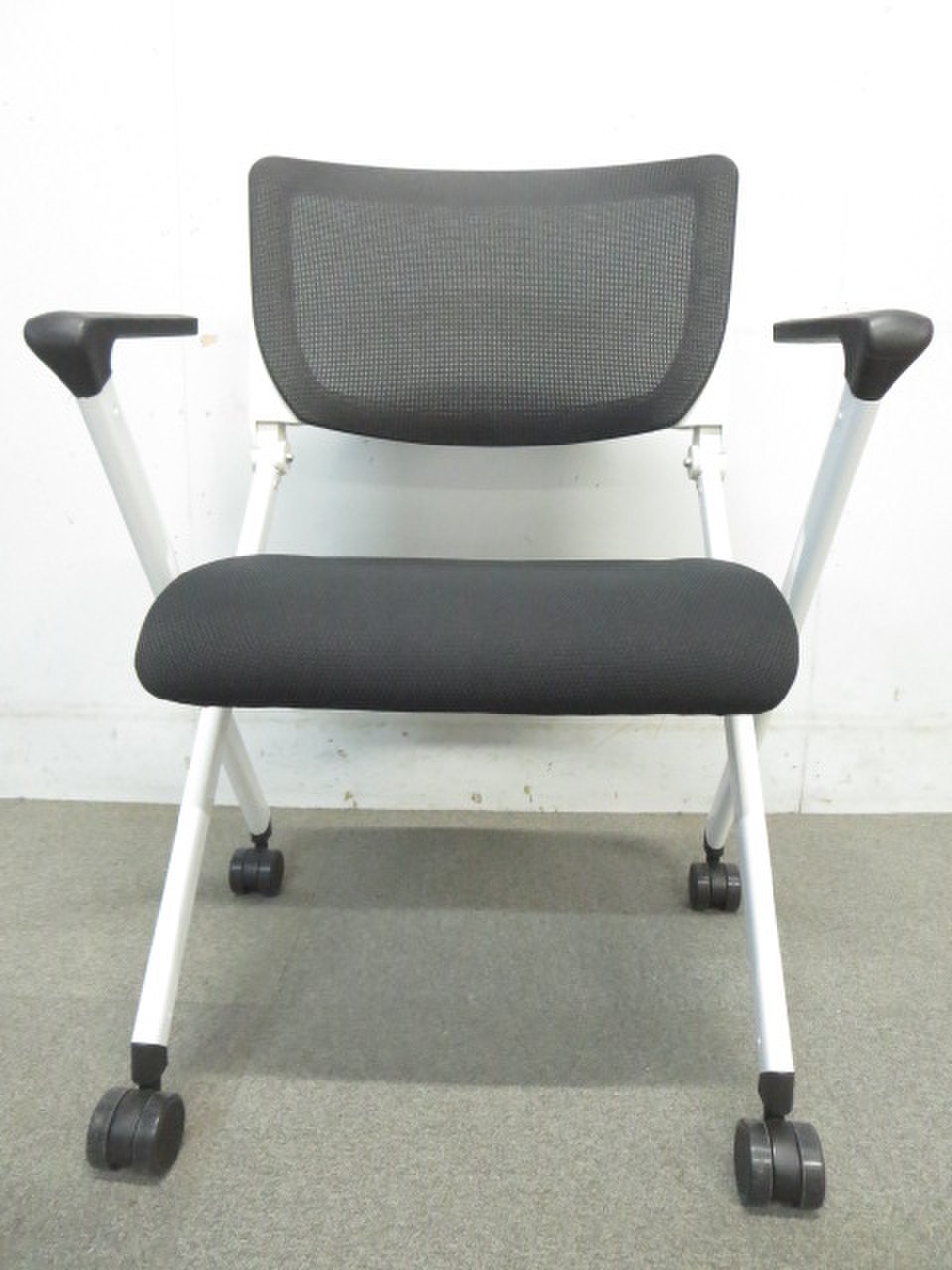 【メッシュタイプ入荷!】■肘付ミーティングチェア ブラック ■キャスター付きでスムーズに動かせる!- 川崎店
