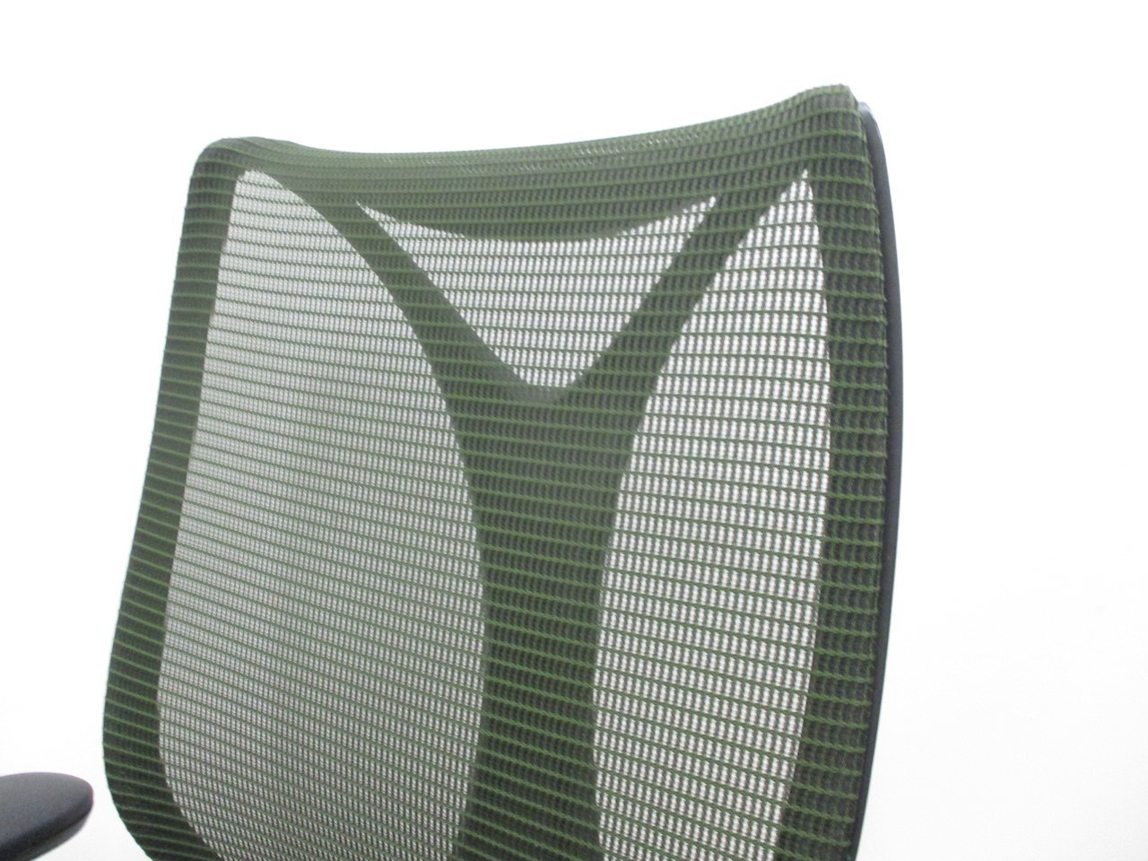 【美しい曲線&透明感のあるメッシュ】■オカムラ製 サブリナチェア ダークグリーン アジャストアーム付 ホワイトボディ ハンガー付【※外部倉庫在庫品(店頭在庫無)】【BR】