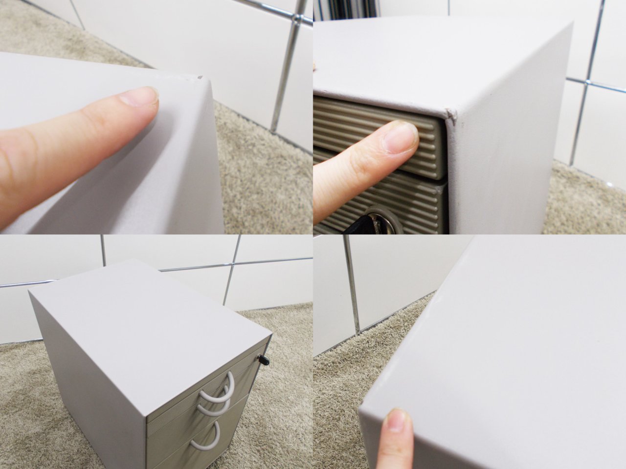 - 一部不具合ありその脇机・ワゴンの本来の効用を果たすための機能以外の一部が使用不可な状態。(例、引出が開閉しづらい、 キャスターロック機能使用不可、ラッチ不良 等がある。)