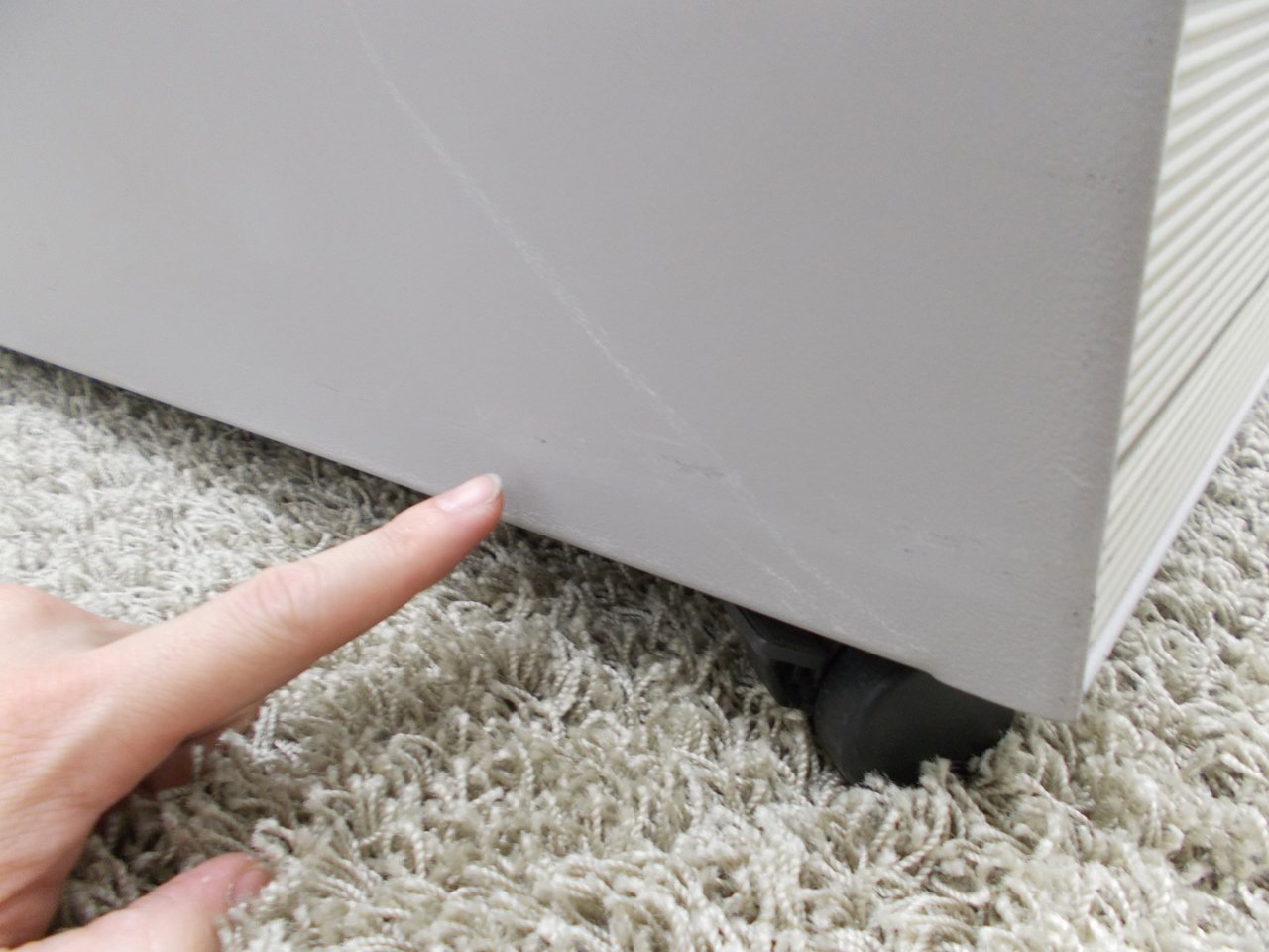 - 壊れている引出開閉不可、施錠不可、キャスター使用不可といったその脇机・ワゴンの本来の効用を果たすための機能に不具合がある。