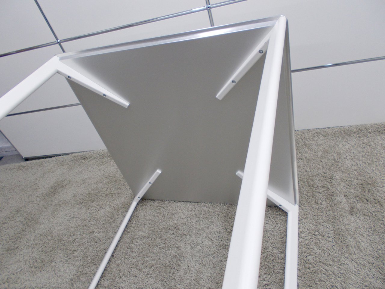 アルミ素材のTOP,シンプルな脚が空間をモダンな雰囲気に変えてくれます。