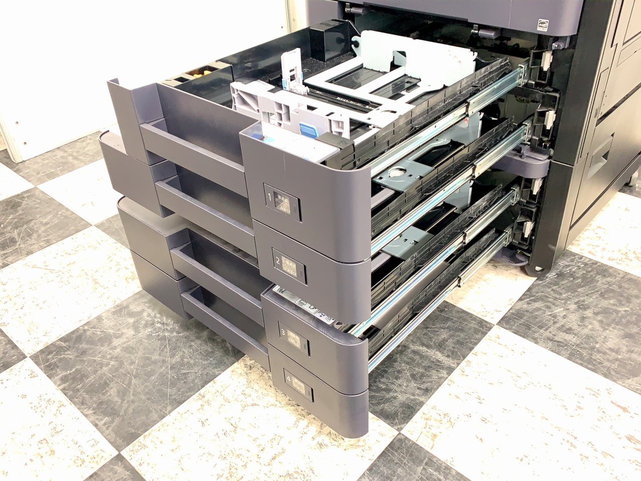 | 給紙容量(最大) | 550枚ペーパーフィーダー(64g/m2)×2段+手差し165枚(64g/m2)、長尺1枚(手差し) |