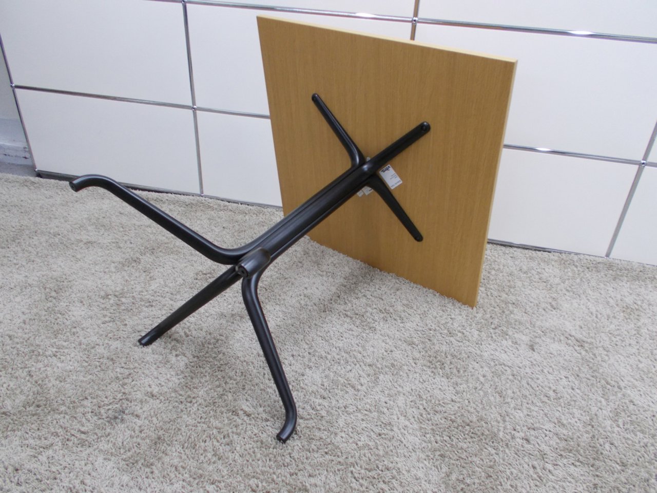 - 一部不具合あり天板歪み、アジャスター無し、キャスター使用不可ようなそのテーブルの本来の効用を果たすための機能以外の一部が使用不可な状態。(例、キャスターロッ ク機能使用不可、棚板無し等がある。)