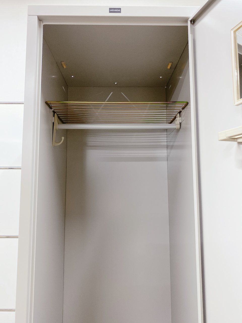 - 完備鏡、ネクタイ掛け、傘立て、網棚、フック等が全て完備されている。