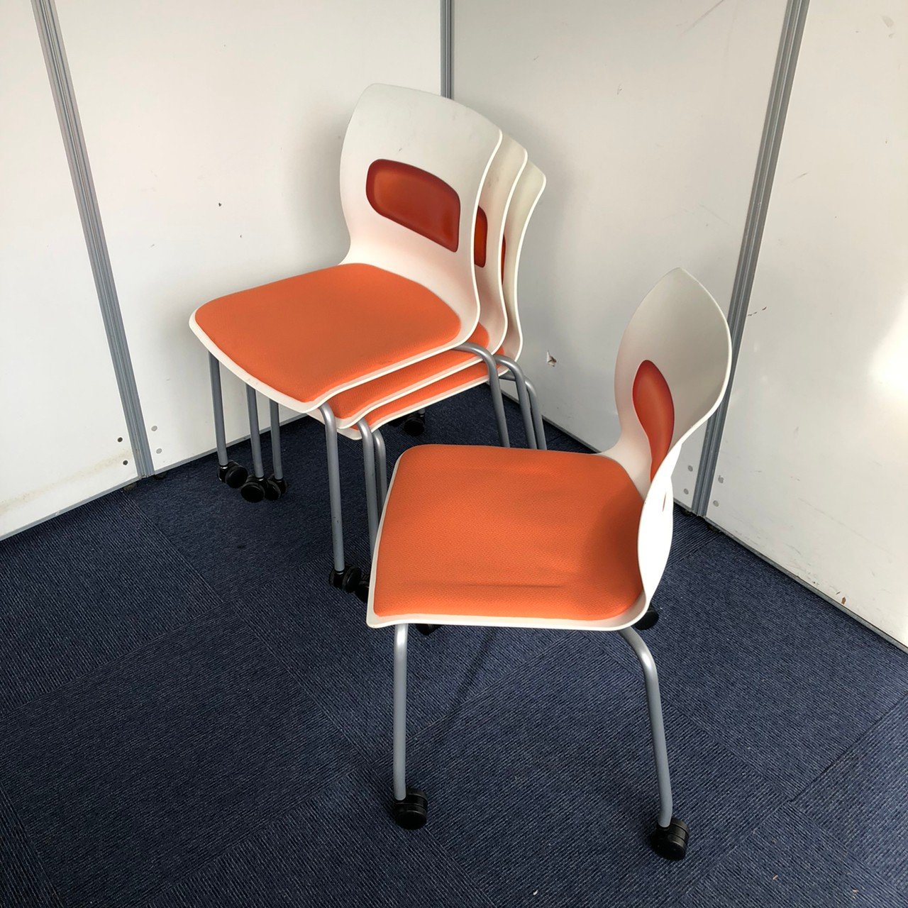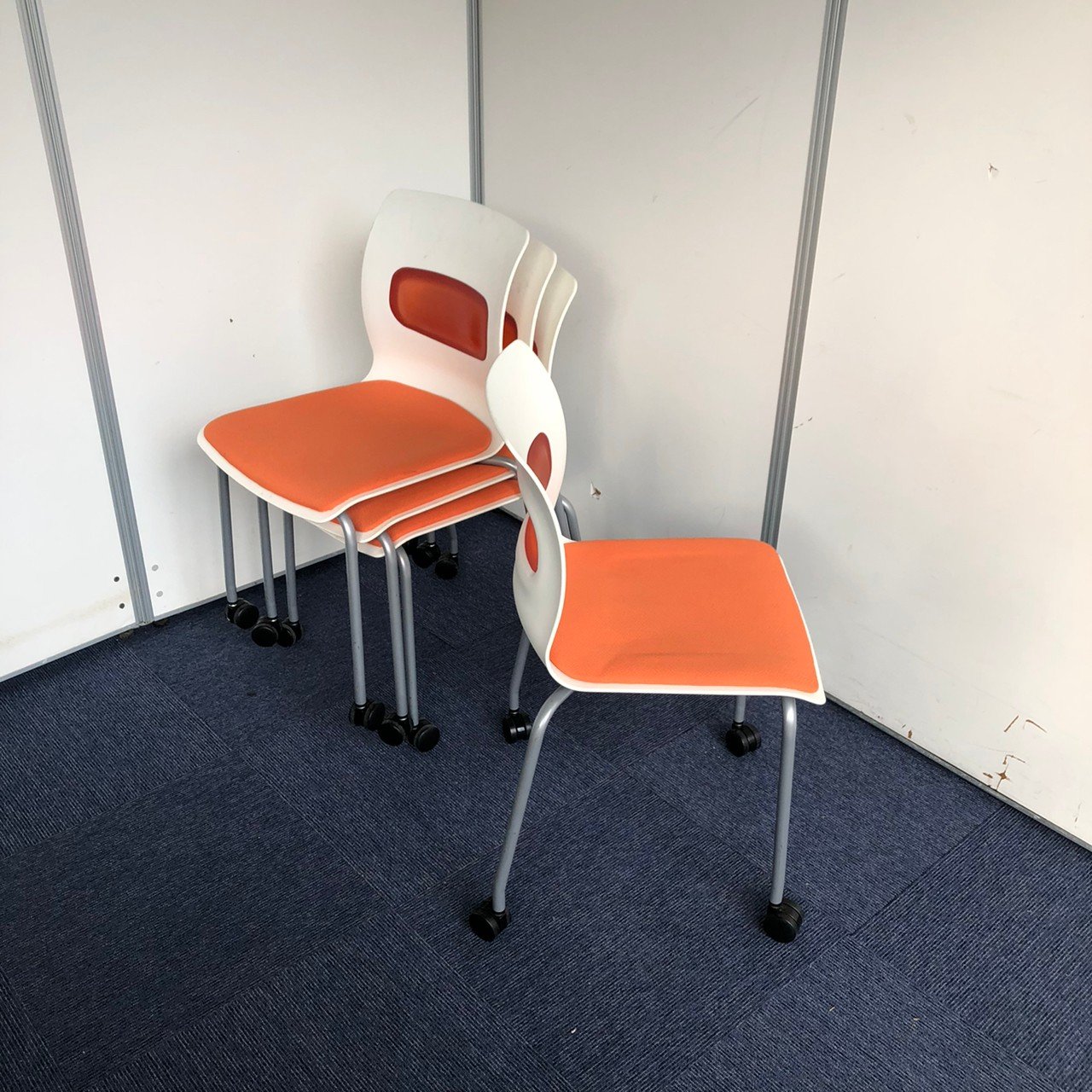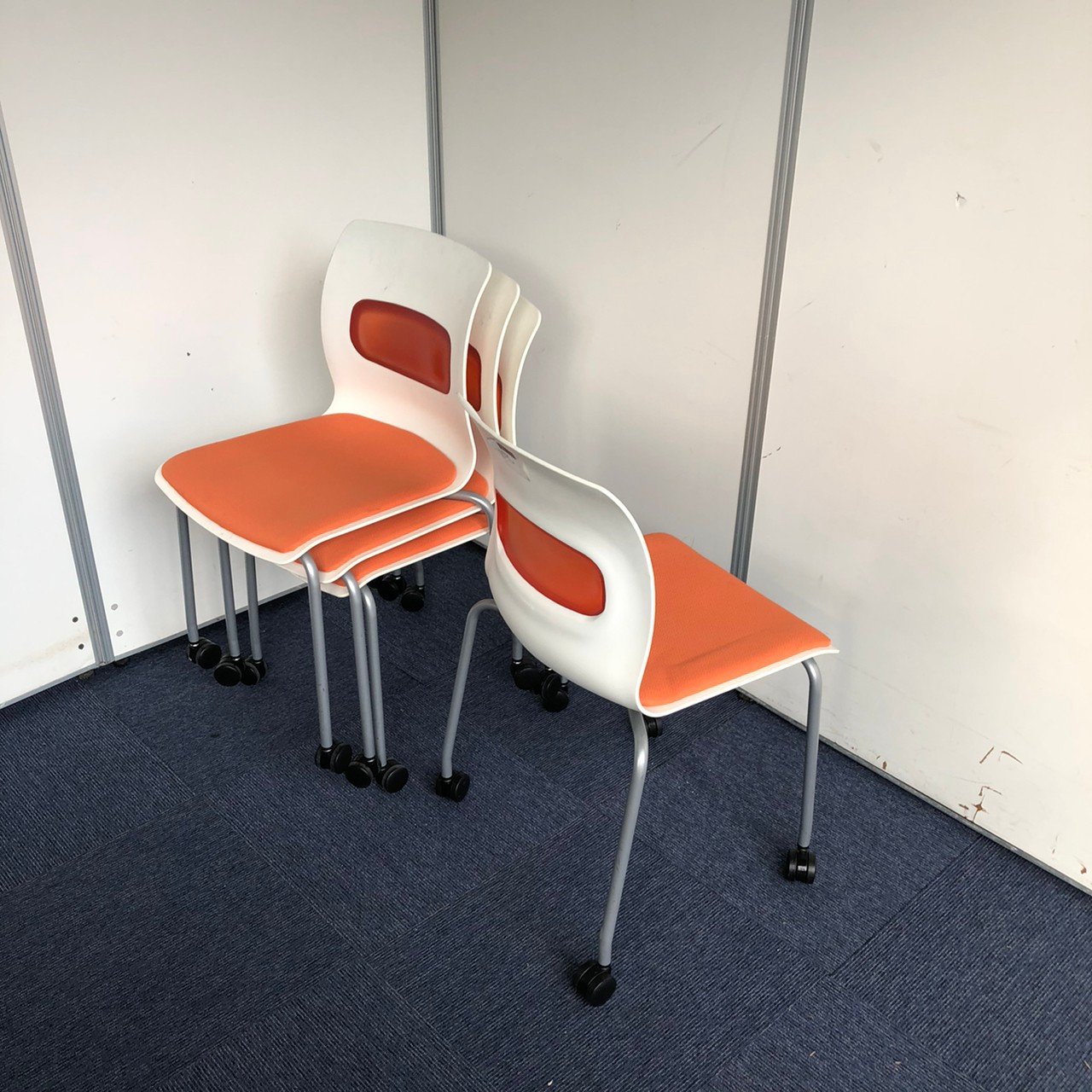 【12脚セット】エアークッション付!ミーティングチェア|スタック可能|重ねて収納|暖色カラー- 神戸・三宮店