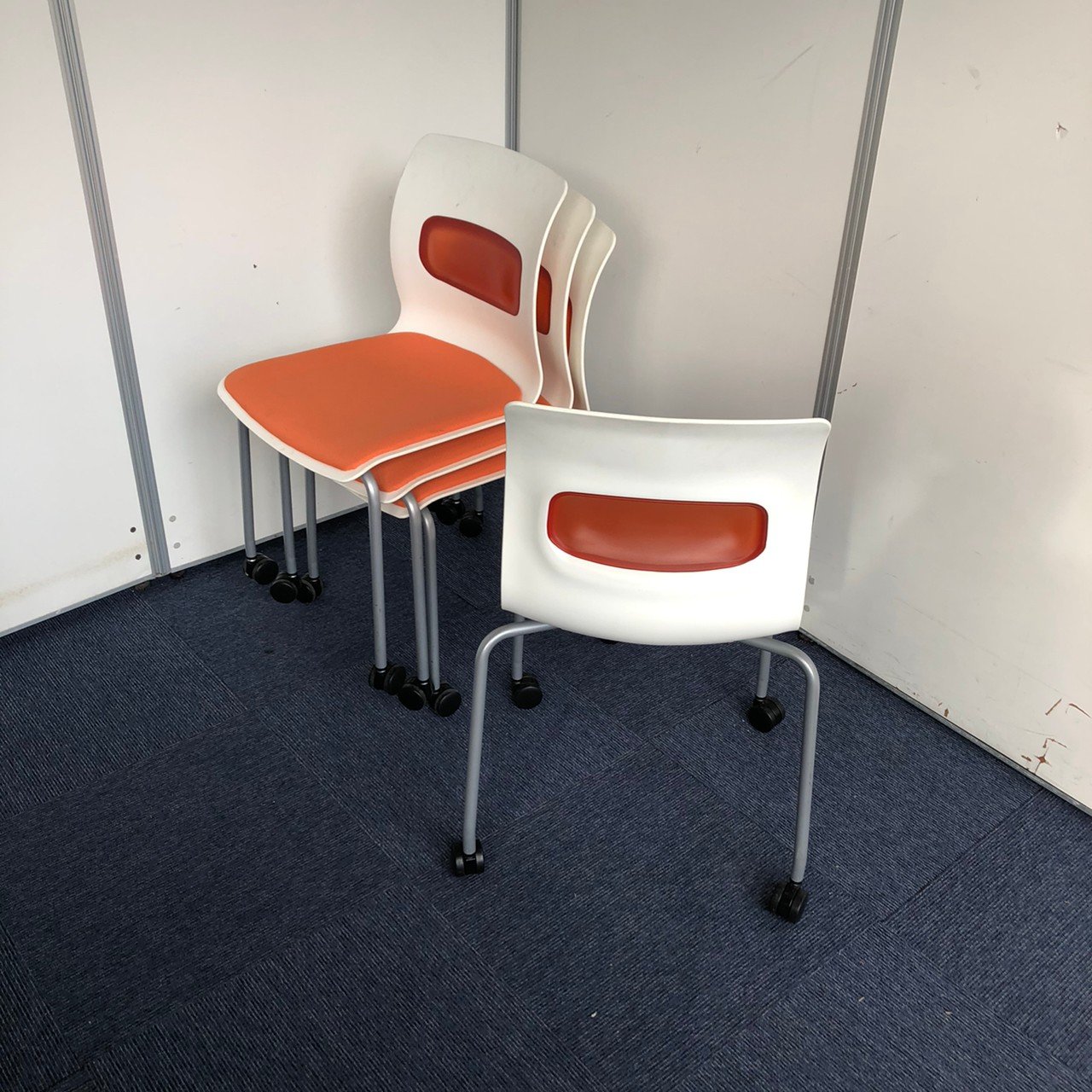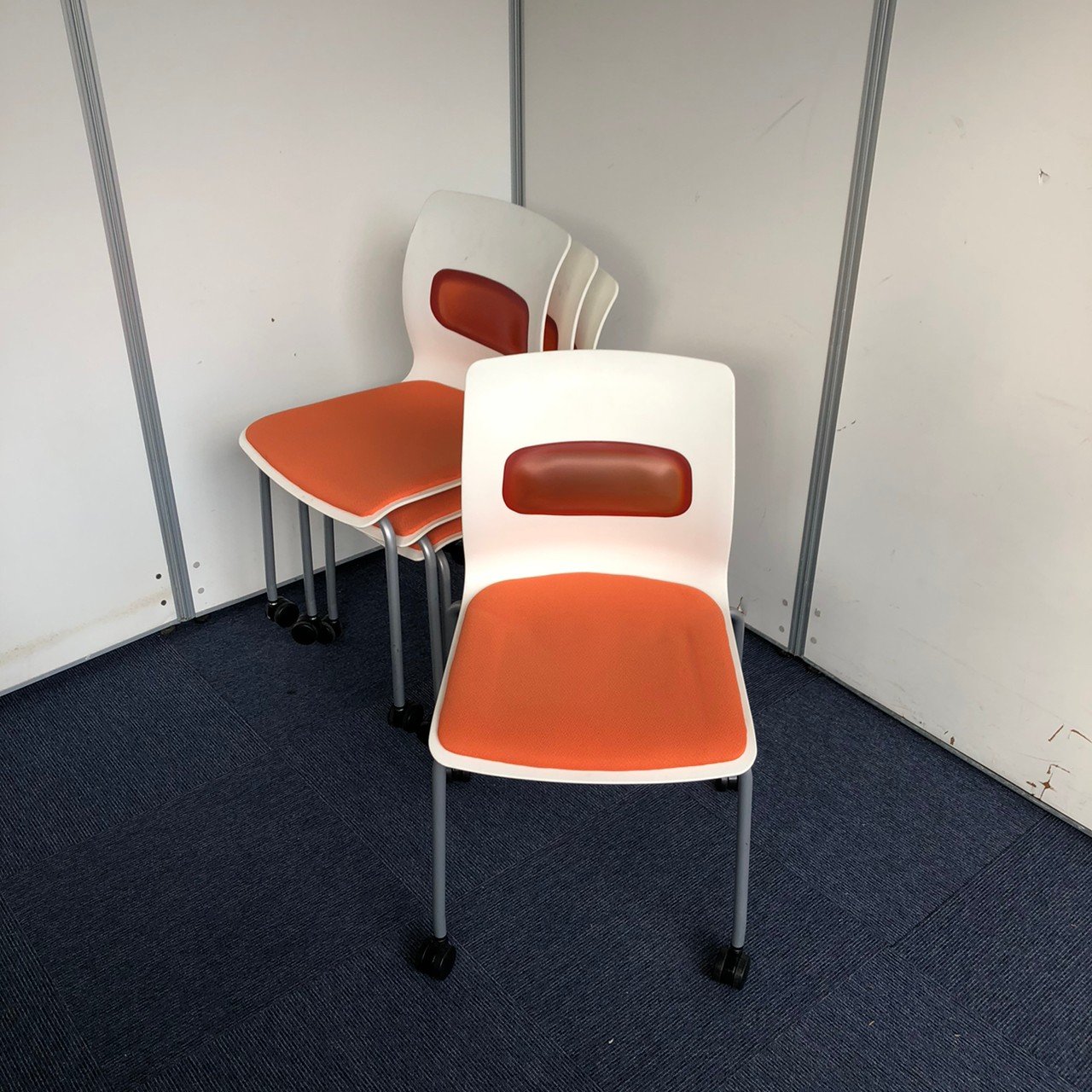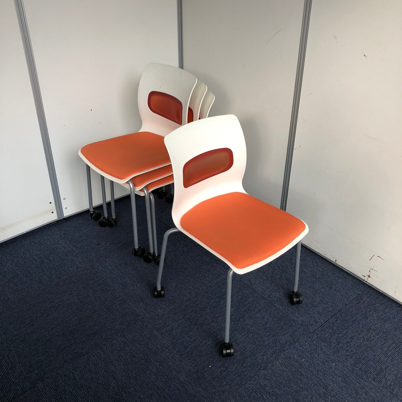 【12脚セット】エアークッション付!ミーティングチェア|スタック可能|重ねて収納|暖色カラー- 神戸・三宮店