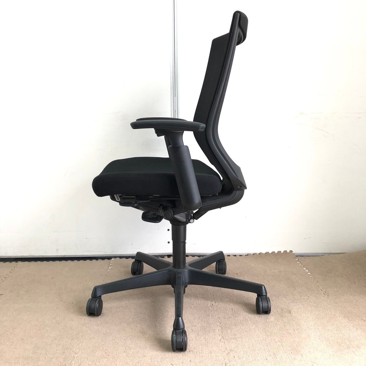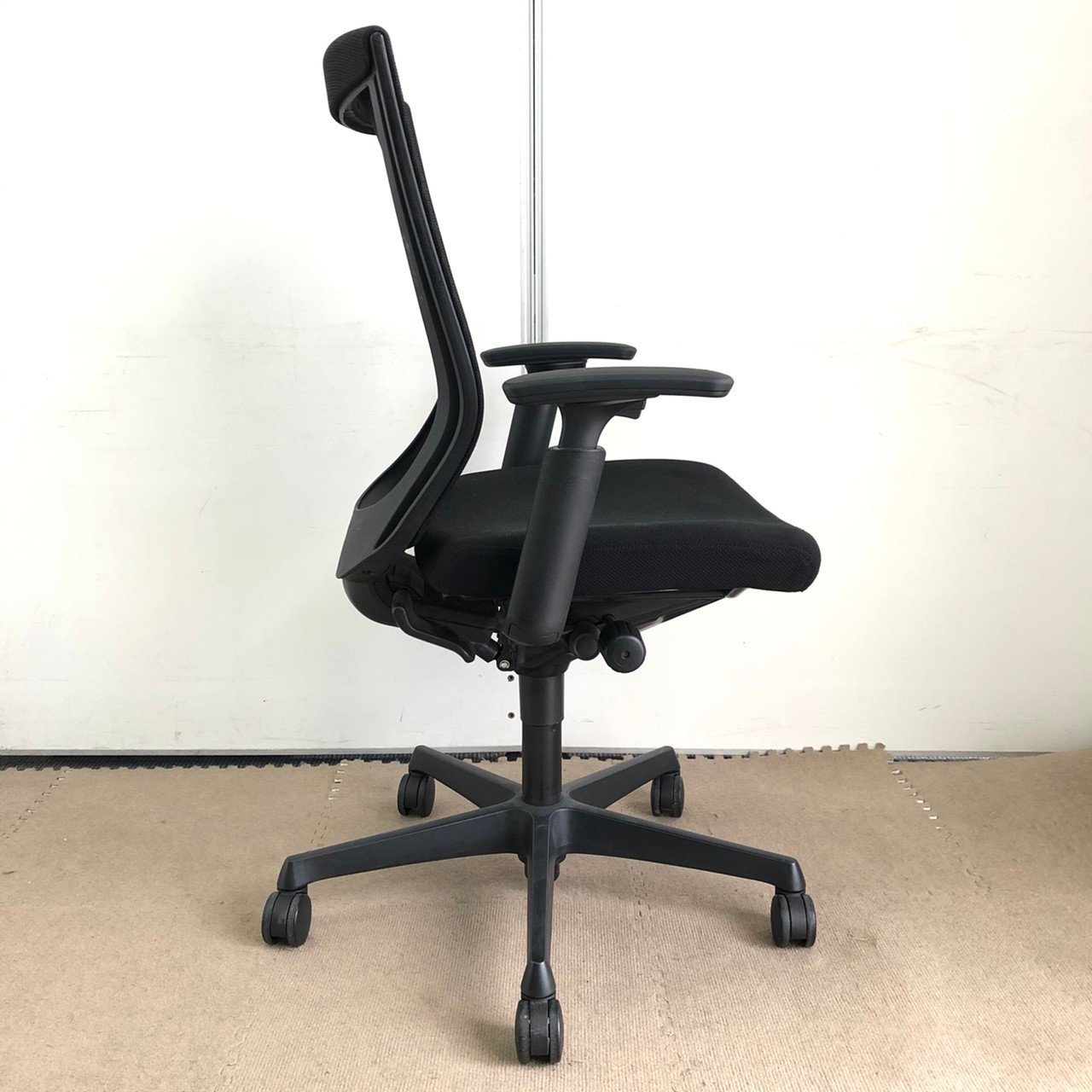【在庫入替セール】【4脚限定】【背中全体をサポートするハイバックタイプのメッシュチェア!】■okamura(オカムラ)製 エスクード(ESCUDO)チェア 肘付き ハイバック 背面メッシュ ■可動肘 ■色:ブラック【K10】
