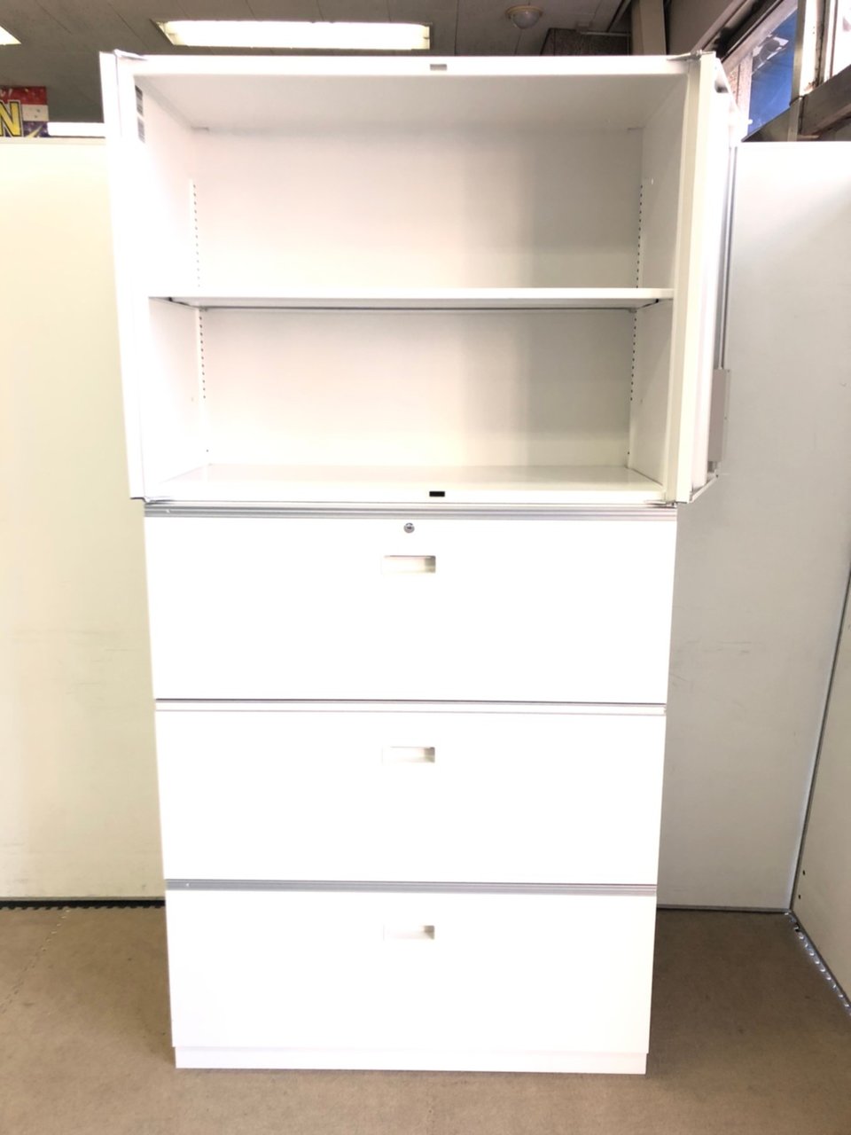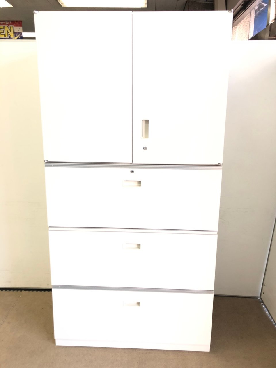 【半端な高さが使いやすい!】 書類を取り出しやすいサイズ感!オフィスに清潔感を与えてくれるホワイトキャビネット!- 千葉店