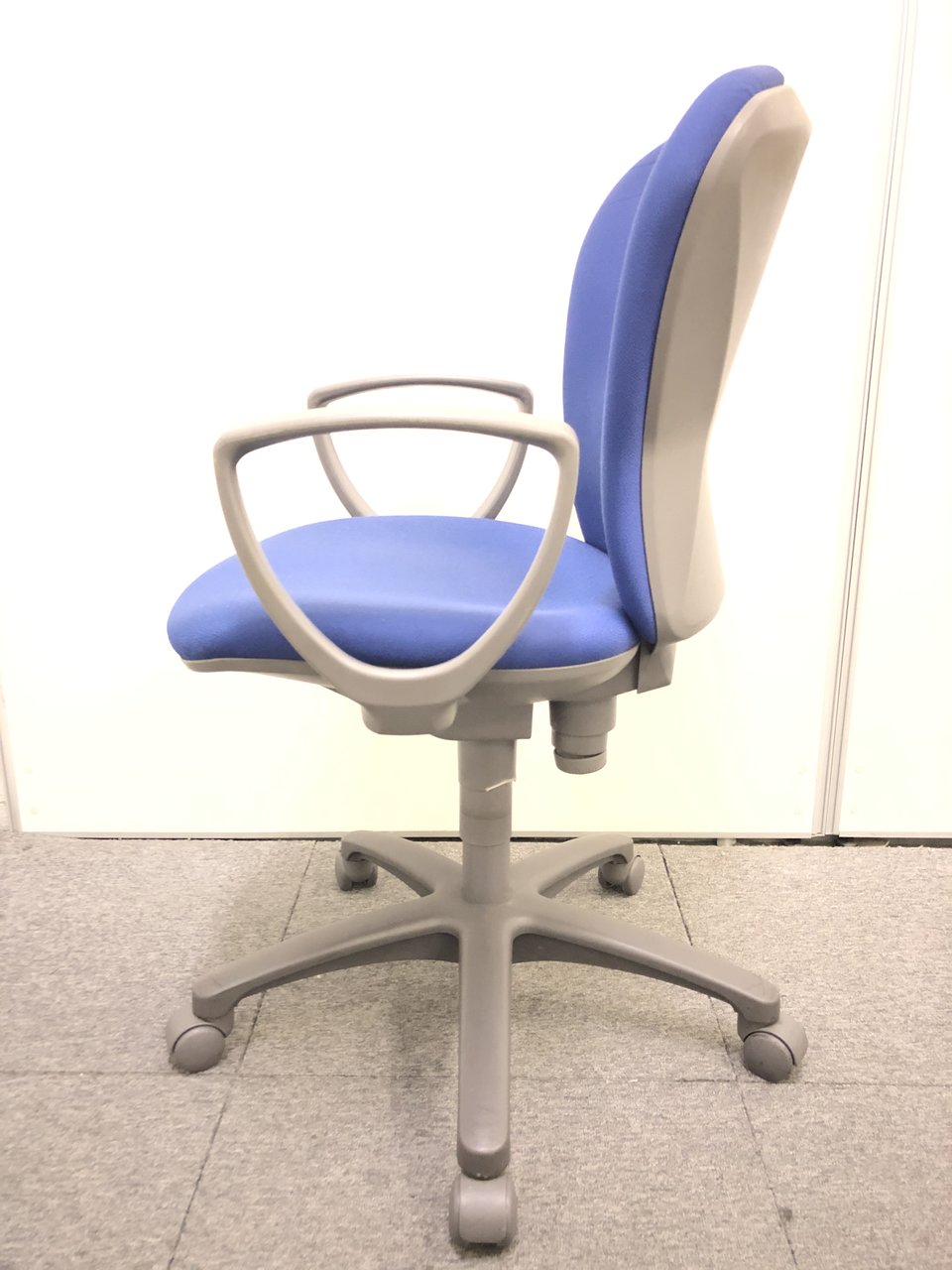 【ふっくらクッションが心地良い!コスパ抜群のコンパクトチェア!】■コクヨ(KOKUYO)製 レグノチェア 肘付ローバック ■サークル肘 ■モデレートブルー×グレーシェル【AD】