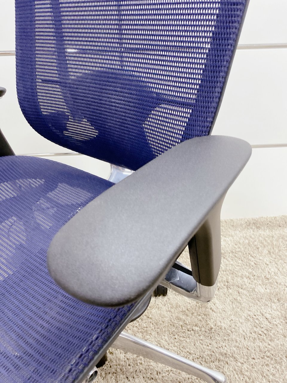 【オカムラ製の最高級チェアが残り1脚限りです!!】オフィスバスターズ 東大阪店 オカムラ製 コンテッサ シリーズ ダークブルー アジャストアーム※可動肘 背/座面メッシュ ランバー 世界で認められた革新的タスクチェア!人間工学に基づいた快適な座り心地を実現! 肘付きハイバックチェア!! 中古 外部倉庫品