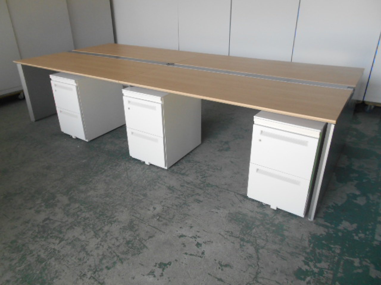 年内納品限り特価!!遠方納品でも配送費お安くさせて頂きます!! 広々と使用可能サイズ!人気のフリーアドレスデスク|ナチュラル天板【関西倉庫在庫】【京都・滋賀】- 京都東寺店